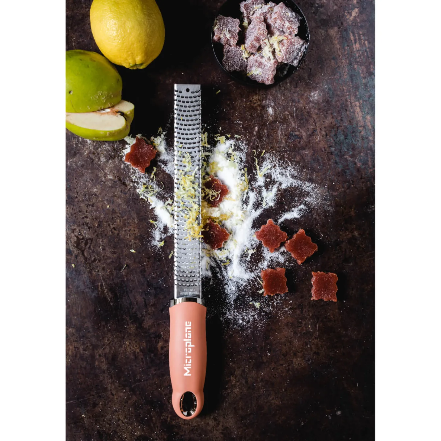 Microplane presents the Premium Classic Series Zester in Cinnamon Orange. This innovative zester is both effective and durable with ultra-sharp cutting edges that cut precisely without shredding or tearing. The 400 micro-teeth, which are photo-etched and angled just right, produce the perfect zest for flavouring your home-made dishes and drinks.