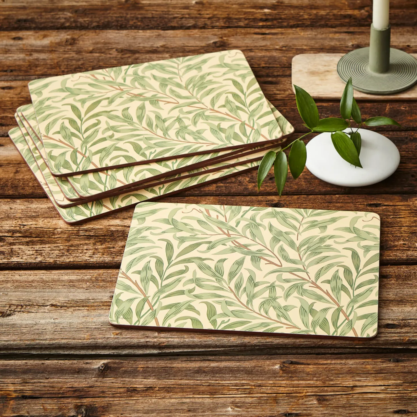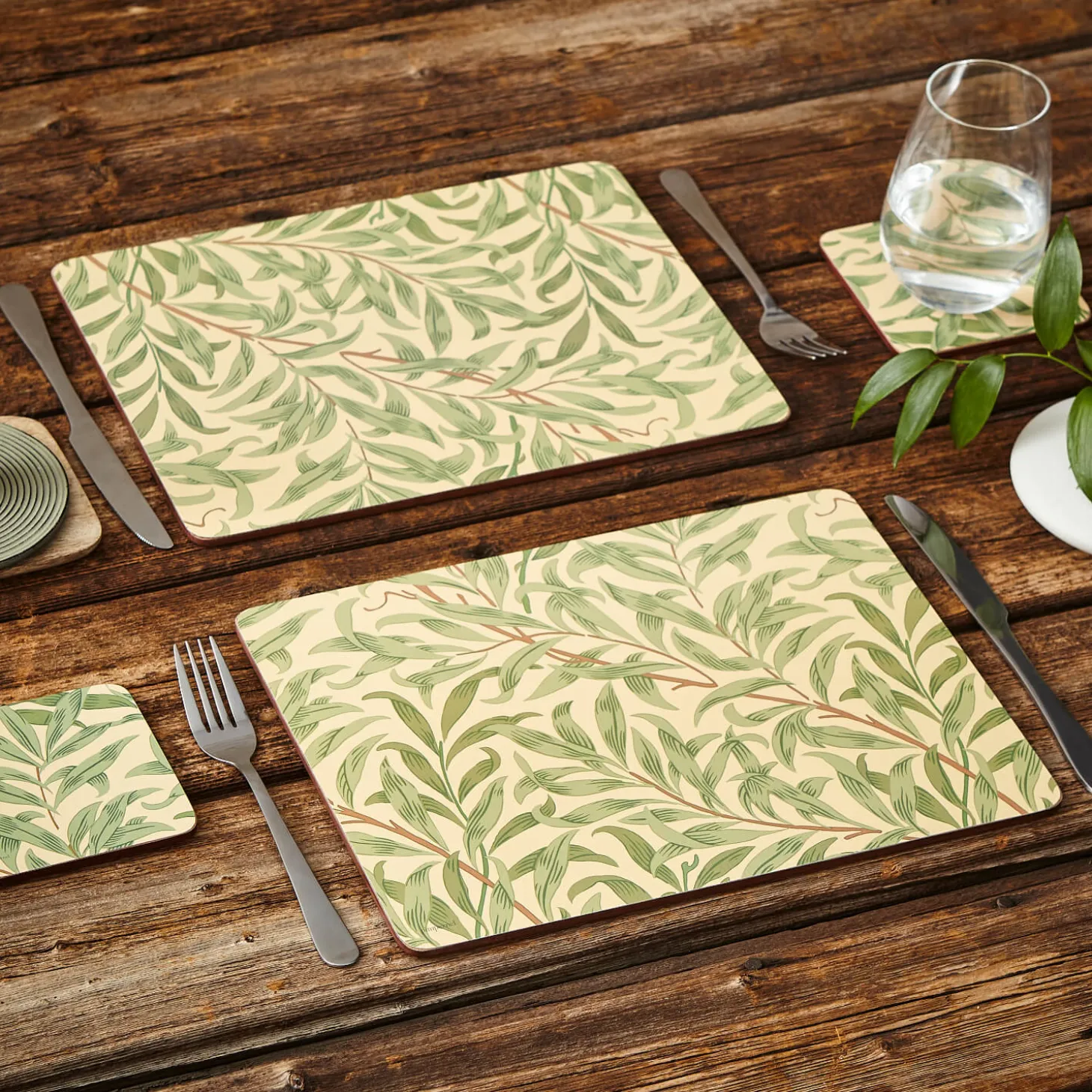 Morris & Co presents the Willow Bough Placemats set in Green. Featuring the iconic botanical patterns of William Morris designed to add a warm cottage feel to your kitchen creating a beautiful, calm and restful touch to your home. The impressive Willow Bough design with its gentle willow branches is perfect for creating an elegant to touch to your table setting.