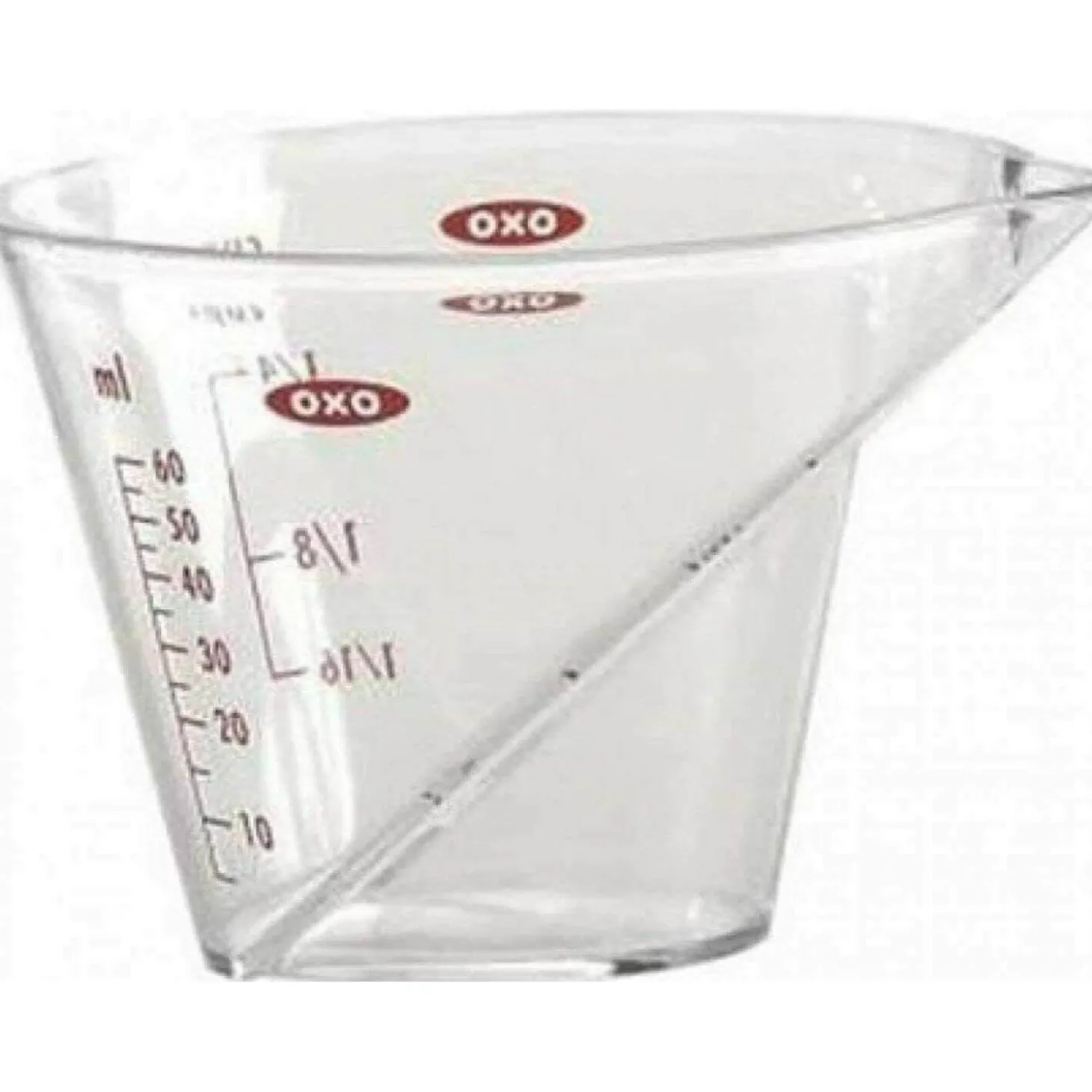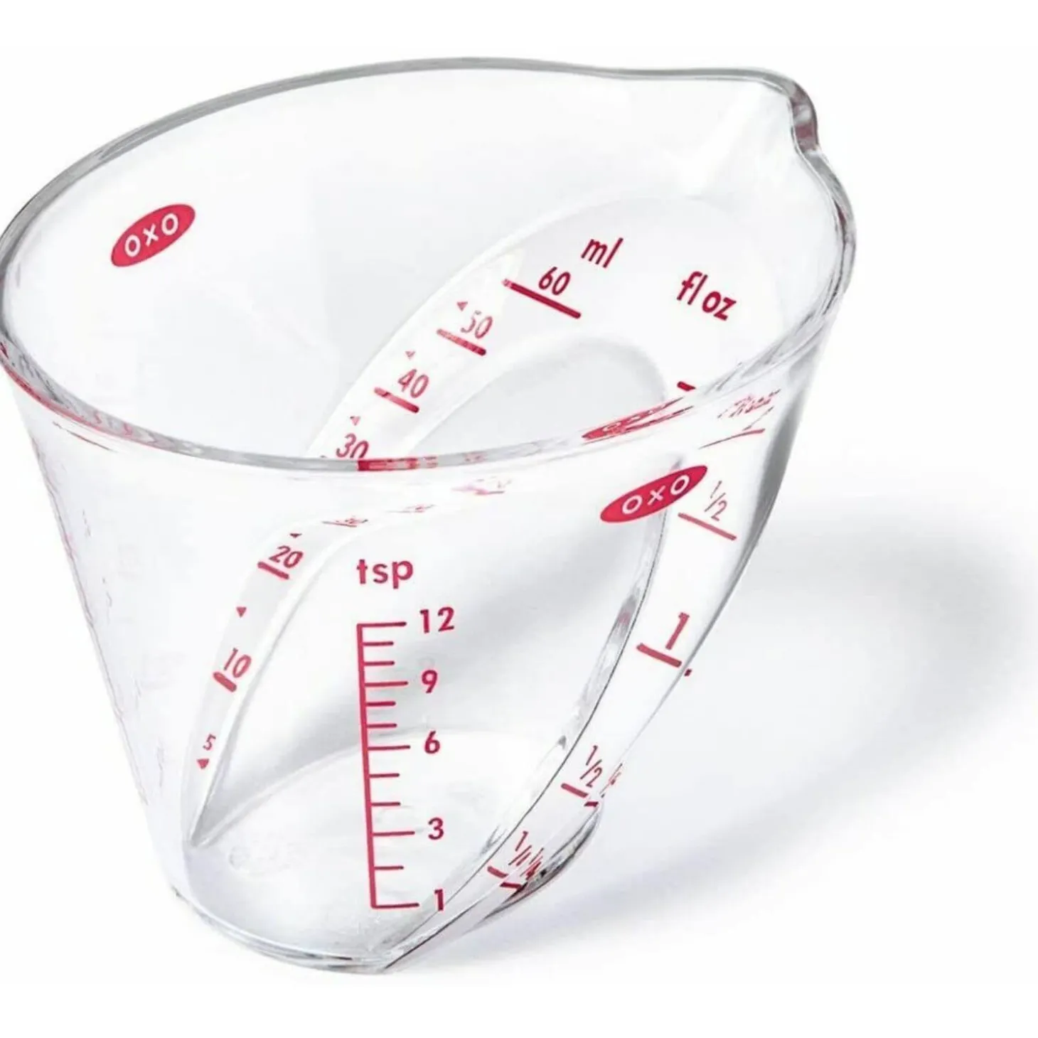 OXO Good Grips presents their Mini Angled Measuring Jug. This is the most perfect addition to any cooks kitchen, the jug is angled enabling you to see the measurements from above as you pour, making for accuracy when you are measuring out ingredients. The handle has a soft non-slip grip, making it comfortable to hold. A must for all cooks and bakers.
