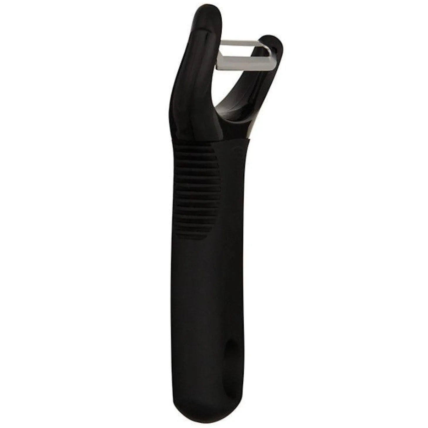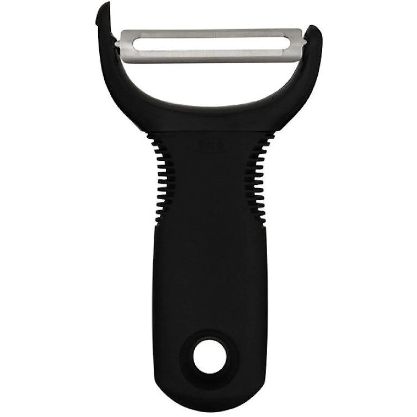 The OXO Good Grips Y Peeler features a precision ground stainless steel blade that effortlessly peels through tough skins and an eye-remover for cutting out blemishes. OXO’s Good Grips peeler also has a comfortable non-slip rubber handle to offer greater control.