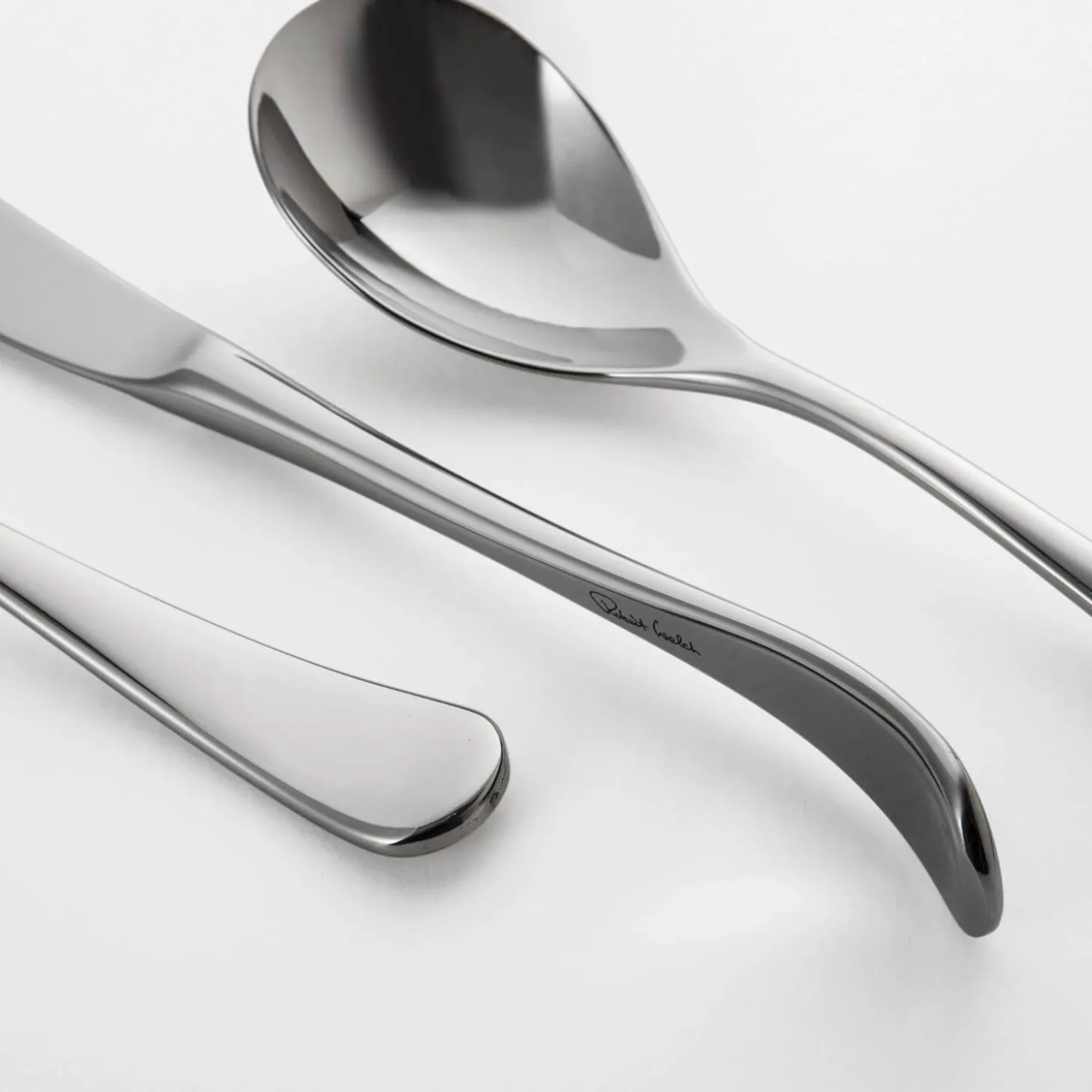 Robert Welch presents the Ashbury Bright Side Knife. The sleek design of the cutlery contrasts beautifully with the modern silhouette of the dining table. The gentle upward curve at the ends of the fork and spoon handles mirrors the downward curve of the knife handle. Made from specially forged hardened stainless steel, this cutlery is resistant to rust and corrosion, making it ideal for both special occasions and everyday use.