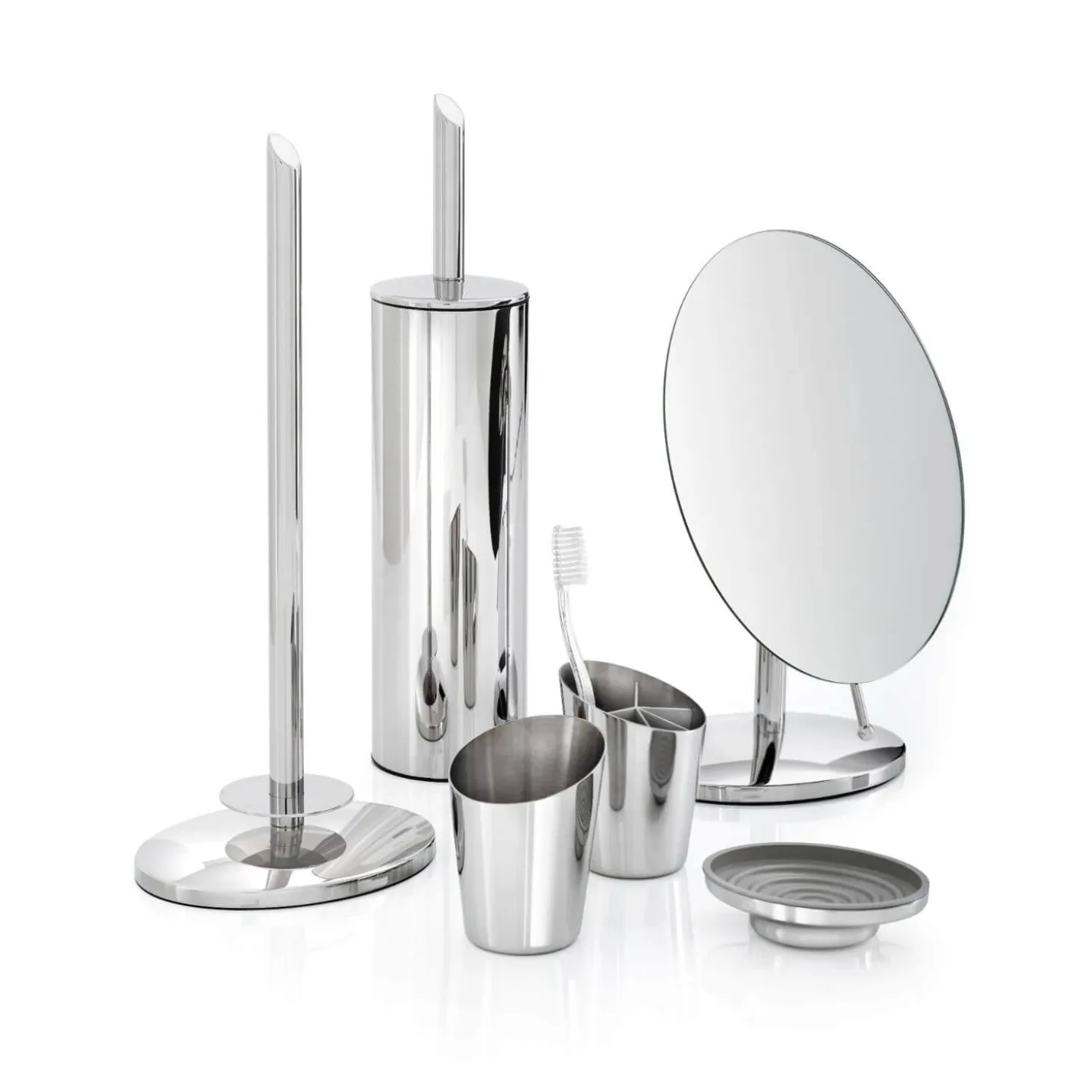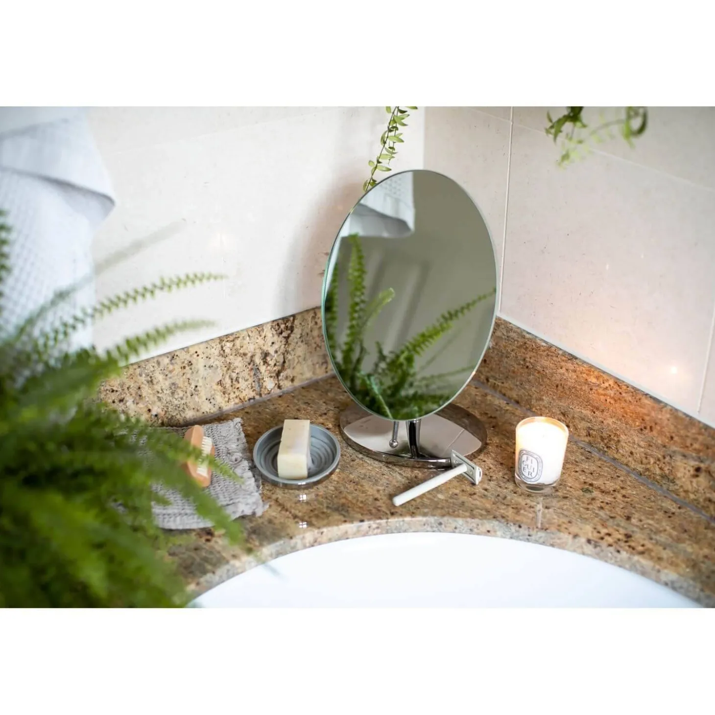 This stylish Oblique Pedestal Mirror from Robert Welch will be a fine addition to any bathroom. The Oblique mirror features a ball joint which allows the mirror to be angled in a way that suits you, together with a small handle to adjust the mirror without leaving fingerprints on the surface of the mirror. The oval mirror reflects the design of the Oblique bathroom range with all matching fittings and accessories. This Oblique Pedestal Mirror is made from mirror-polished high-quality stainless steel and with the base being weighted it brings stability.