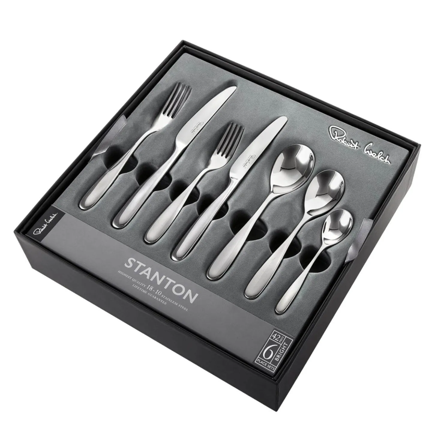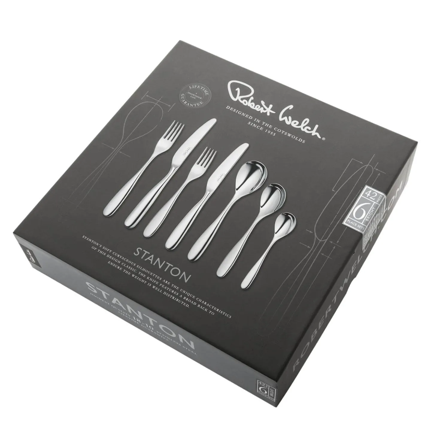 Robert Welch presents the Stanton 42-Piece Cutlery Set. This design showcases not only stunning artistry and impeccable craftsmanship but also cutlery that guarantees a comfortable and enjoyable experience for its users. Made from specially forged hardened stainless steel, this cutlery set is resistant to rust and corrosion, making it perfect for both special occasions and everyday use.