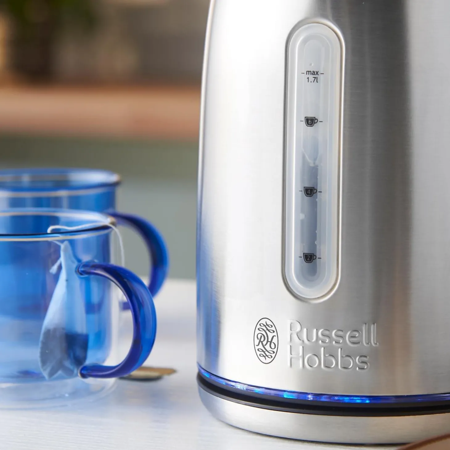 Russell Hobbs presents the Buckingham Jug Kettle in Brushed Stainless Steel. This sleek, stylish kettle is as functional as it is attractive, able to hold 1.7 litres of water, which is sufficient to make up to seven cups making it ideal for larger households. The ring light illuminates when boiling and has a rapid boil function that allows you to boil one cup of water in just 45 seconds. A great kettle for all kitchens.