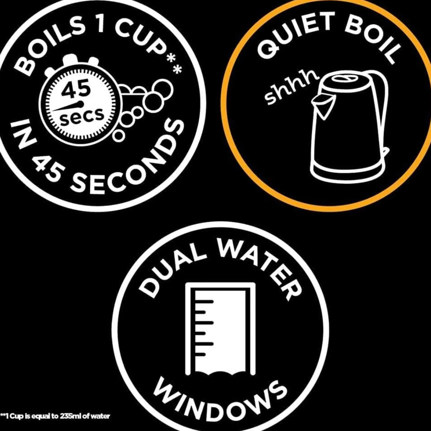 - Boils one cup of water in 45 seconds / 1 cup is equal to 235ml