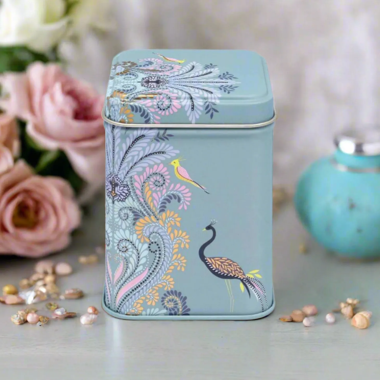 Sara Miller London presents the Small Square Tin in Filigree design. Elegantly decorated with beautiful paisley-inspired patterns, delicate foliage and a charming bird motif, this tin features a gentle palette of green and pink with gold accents. Perfect for storing treats, keepsakes and more, this tin would make a lovely gift or treat for yourself.