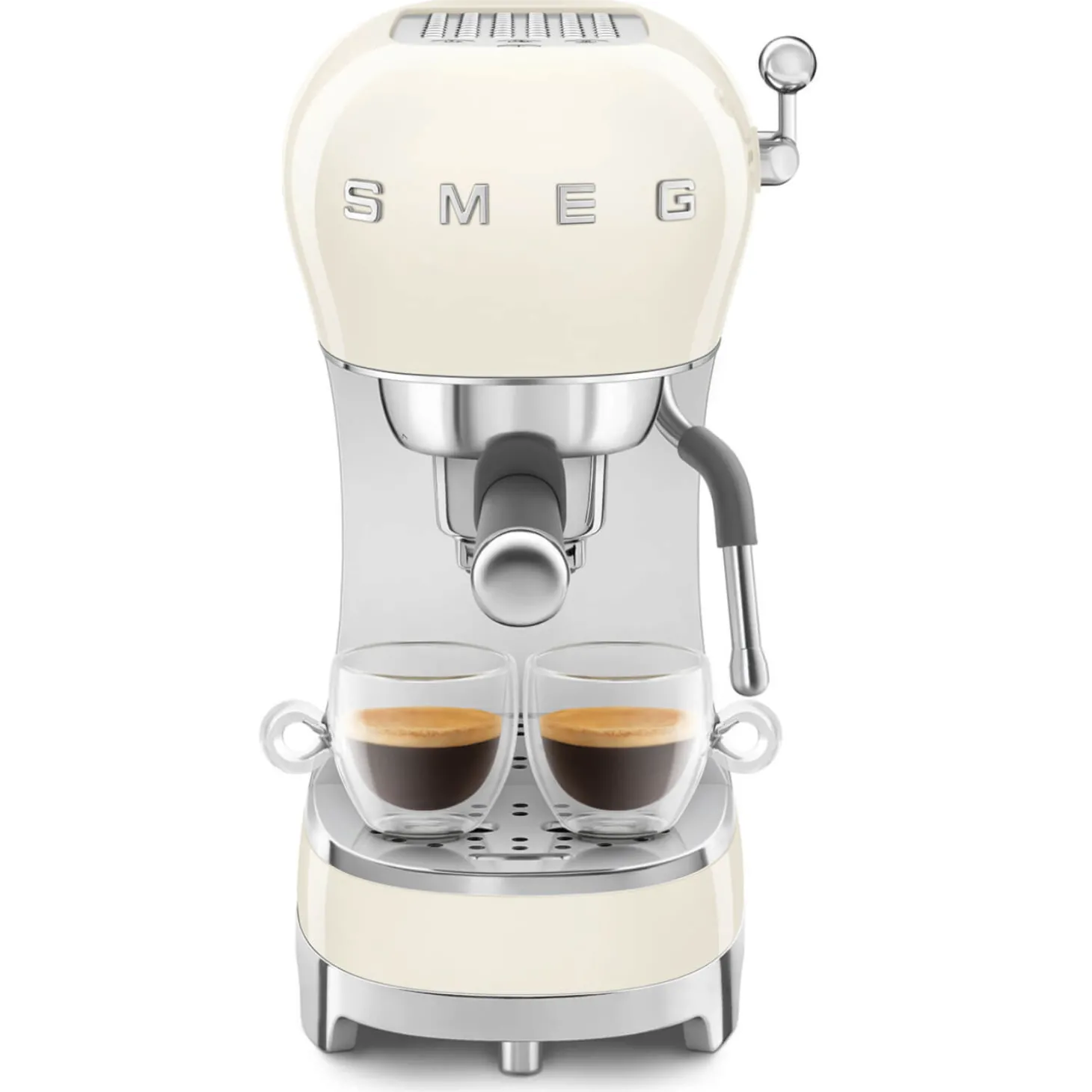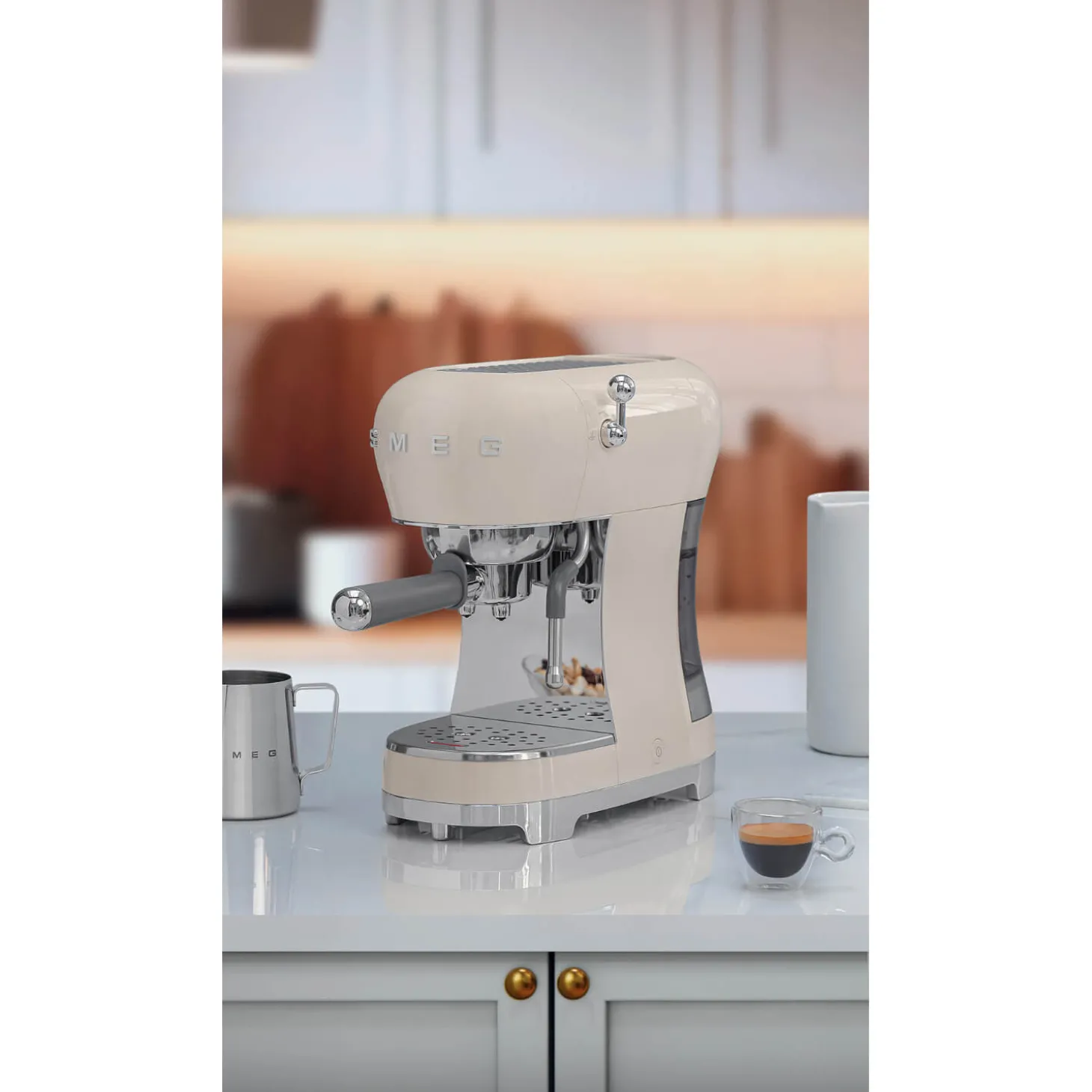 The Smeg ECF02CRUK Espresso Coffee Machine in Cream is both stylish and easy to use, creating authentic Italian espresso and coffee-based drinks in minutes thanks to the simple 3 button, lever controls and Thermoblock heating. Created from stainless steel this coffee machine has a retro 50’s aesthetic perfect for contemporary kitchens. Combine this great coffee maker with the Coffee Grinder, which features a large, easy-fill 350g Tritan bean hopper, holding enough beans for approximately 21 cups of coffee or up to 50 espresso shots. A great coffee combination for all those who wish to become a super barista in their own home!