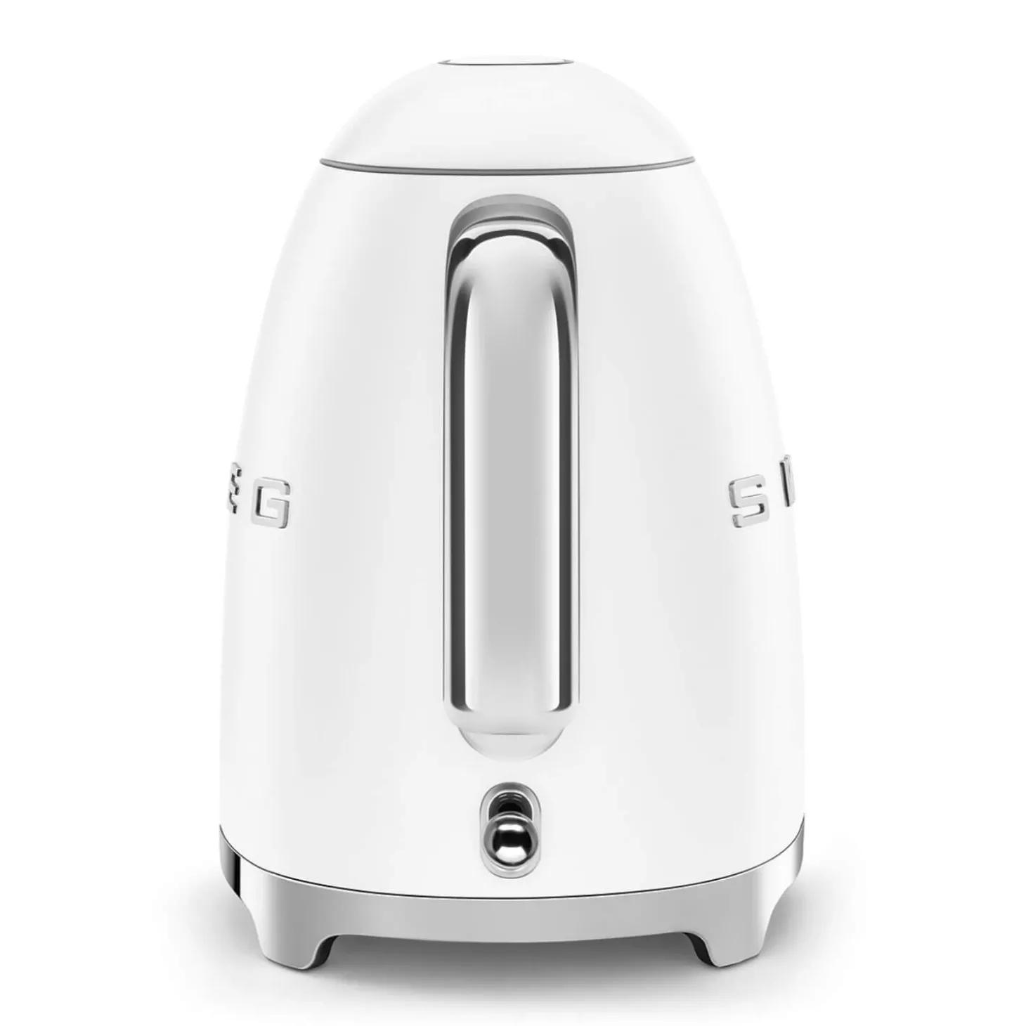 This Smeg jug kettle in Matte White is both stylish and practical featuring the elements of contemporary design with modern functionality. With a 1.7 litre capacity, this item makes a perfect choice for large households and features a variety of useful functions including a 360° swivel base, automatic shut-off at 100°C, water level indicator and soft-opening lid. There is a selection of alternative colours also available.