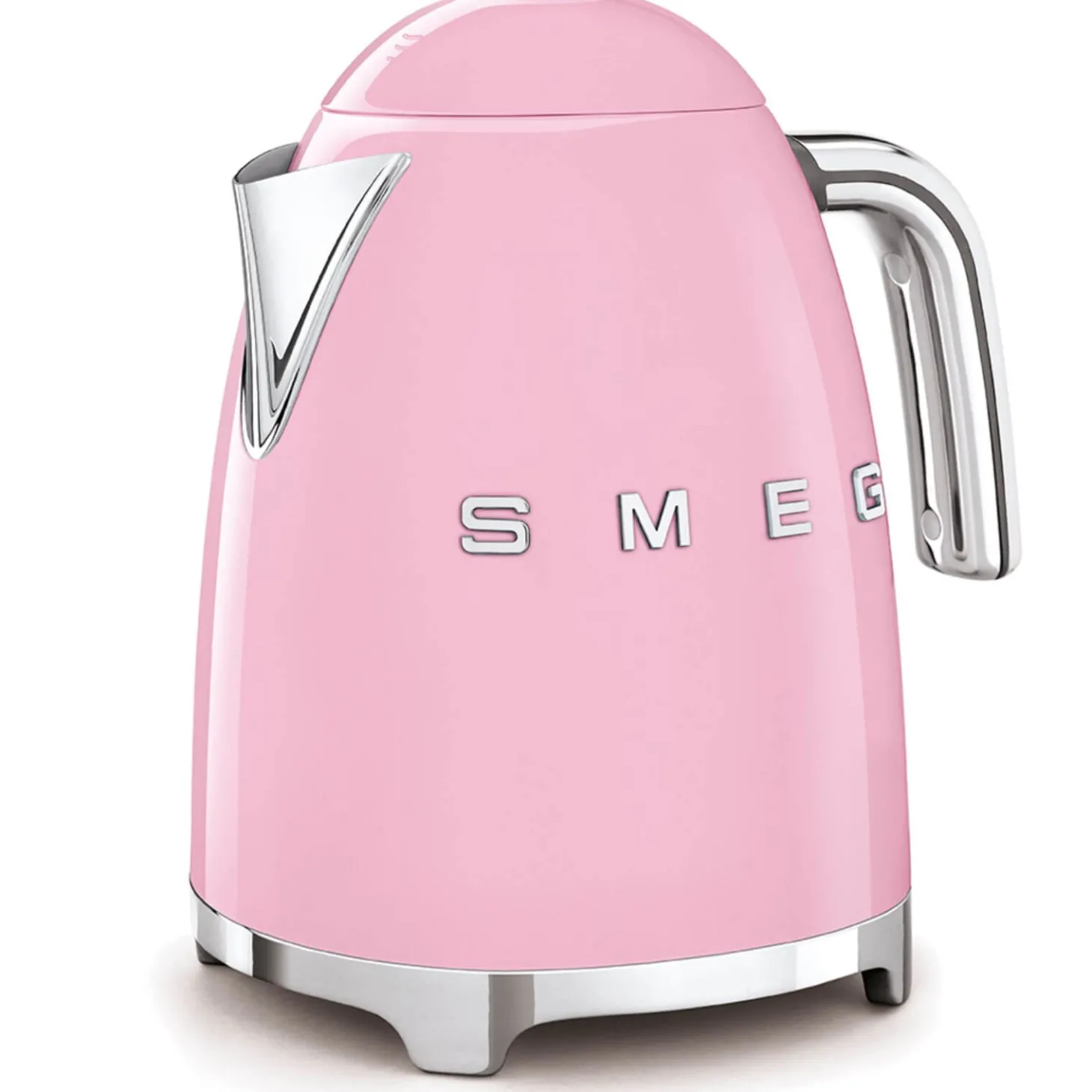 The Smeg kettle in pink is both stylish and practical featuring the elements of contemporary design with modern functionality. With a 1.7 litre capacity, this item makes a perfect choice for large households and features a variety of useful functions including a 360° swivel base, automatic shut-off at 100°C, water level indicator and soft-opening lid.