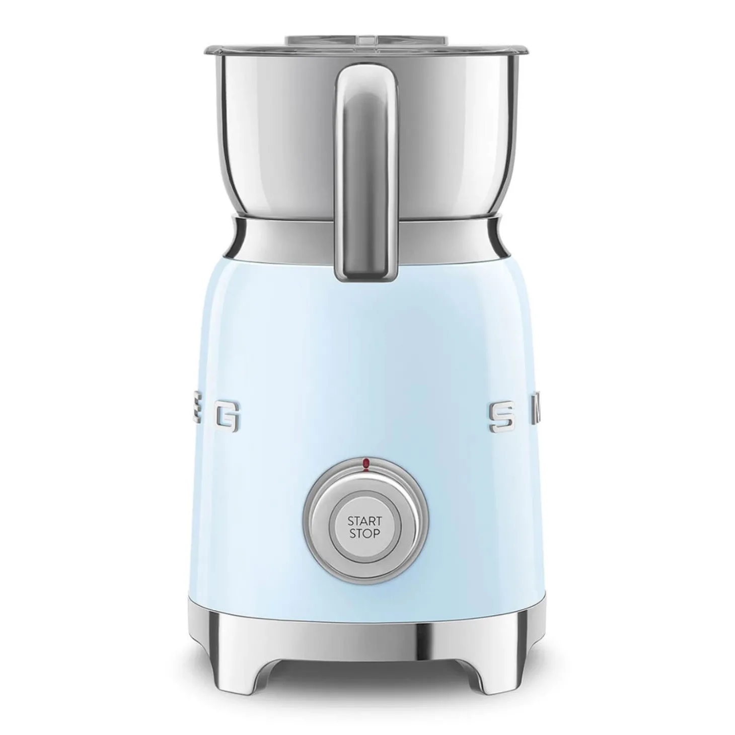 Create smooth, thick milk foam with the MFF11 series milk frother by Smeg. Designed to cater for cold and hot drink recipes, opening up a wide variety of different combinations! Featuring a powerful 500W induction motor that can create silky foam in a matter of minutes from the comfort of your home. This item also has various features including six automatic programmes, manual functions to tailor your experience, and a notched and flat disc attachment to create your desired beverage. The exterior of the milk frother complements the rest of the Smeg 50’s retro-style range. Other colours are also available.