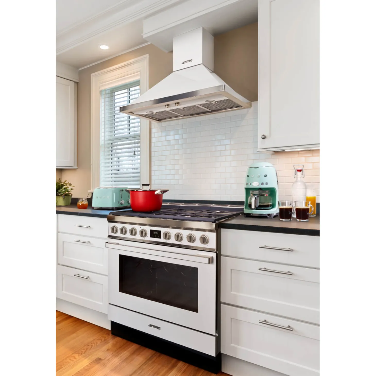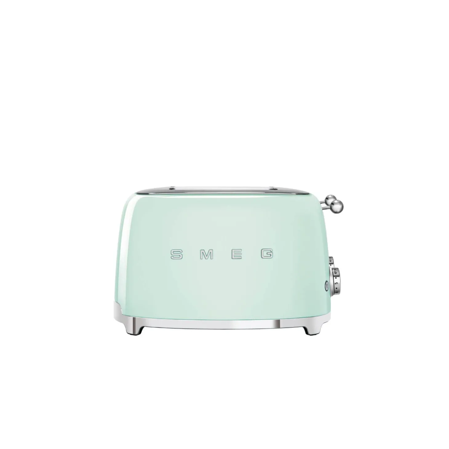 Toast a variety of bread with the Smeg 4 slice retro toaster in pastel green. Sporting a classic 1950’s Americana design with its seamless curved edges, stylish silver accents and raised SMEG logo; this retro shape toaster makes a true style statement in any kitchen.