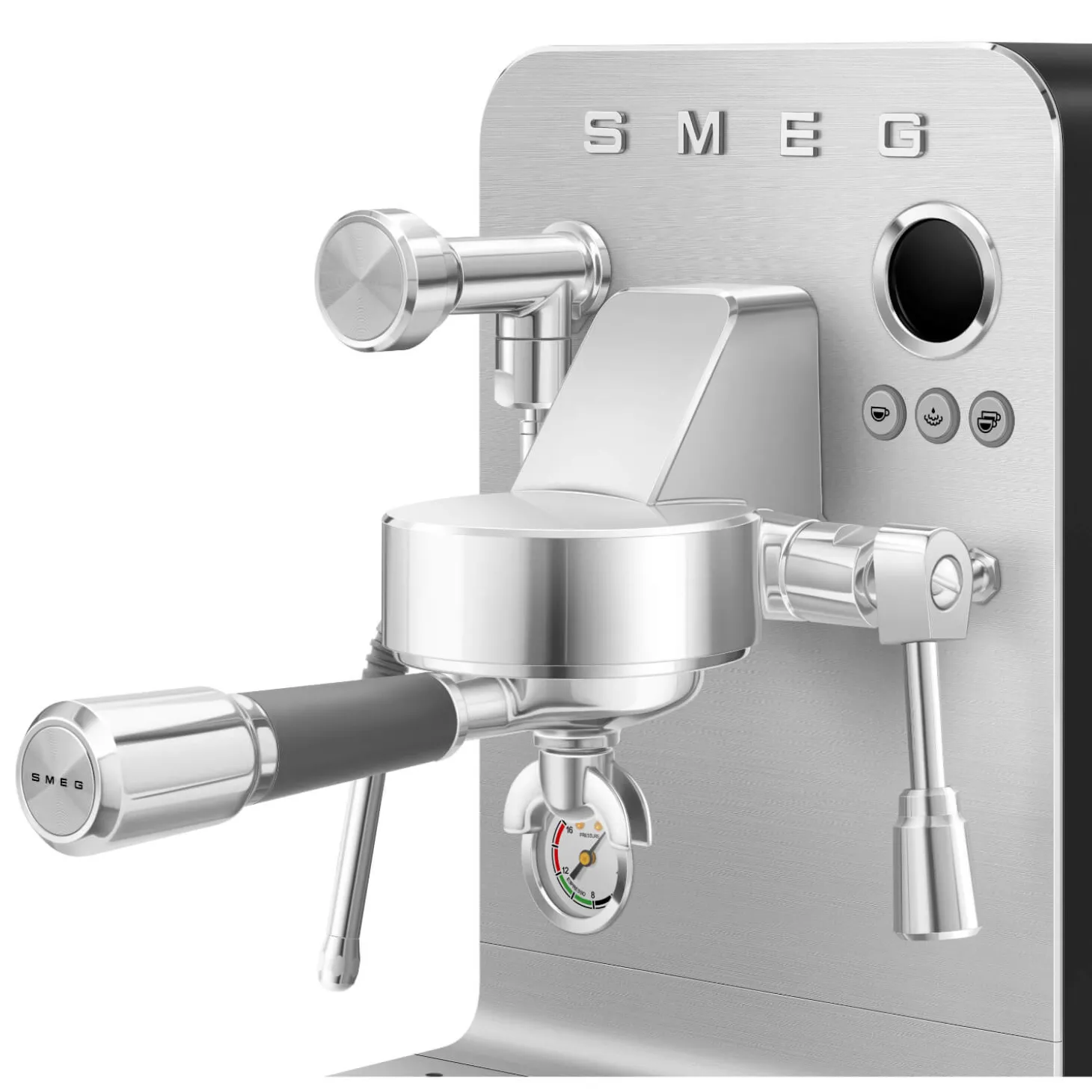 Underneath the cup tray, you’ll find a silk-screened QRcode, providing access to the ‘My Smeg Assistant’ portal: simply scan it with your mobile phone to access a helpful guide for using the EMC02-Minipro Espresso coffee machine, instruction manual, technical documents as well as regularly updated recipes and information.