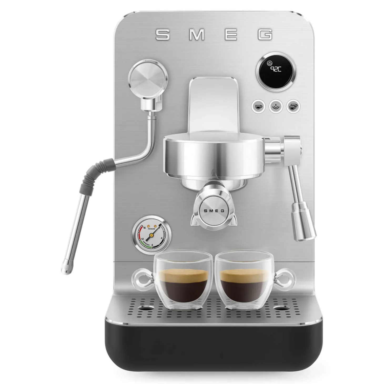 - Stainless steel drip tray and steam nozzle