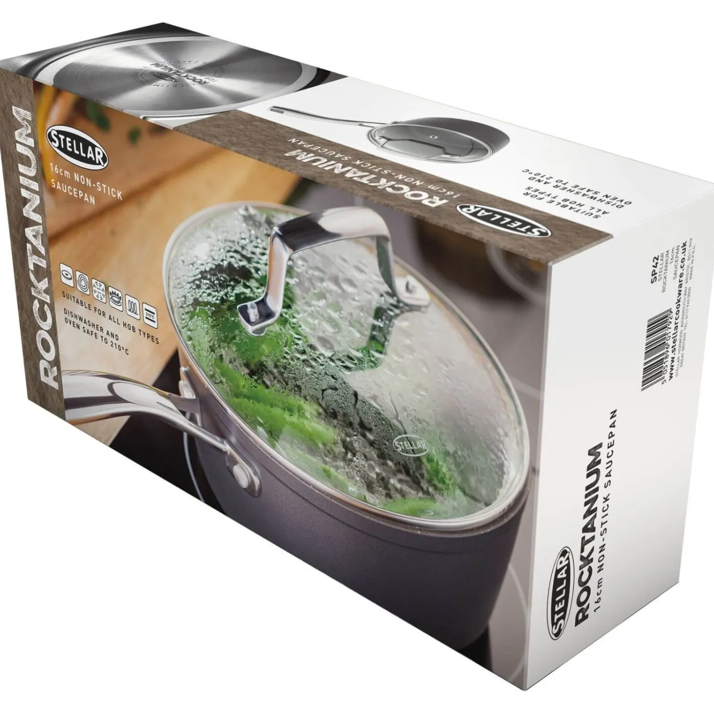 The Rocktanium 16cm saucepan from Stellar has been designed to provide superior performance on all hob types thanks to an induction base ensuring even heat distribution, this saucepan also features QuanTanium non-stick coating which ensures easy food release, cleaning and scratch-resistant benefits.