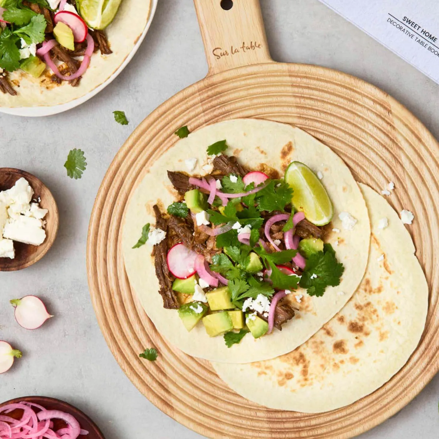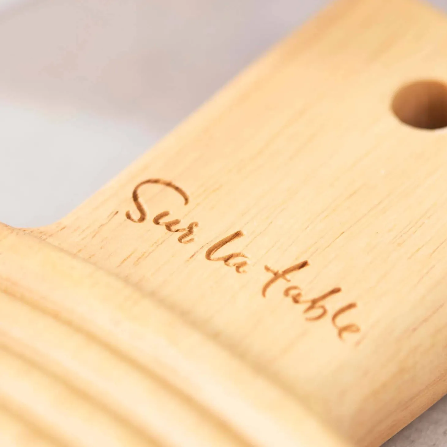 Sur La Table presents the Medium Round Paddle Serving Board from their Colour Me Happy collection. Crafted from sustainably sourced hevea wood, this board is sure to add a touch of natural beauty to your table. Its modern striped pattern and warm, natural tones make it a stunning choice for serving when entertaining, while its durable design also protects countertops during food preparation.