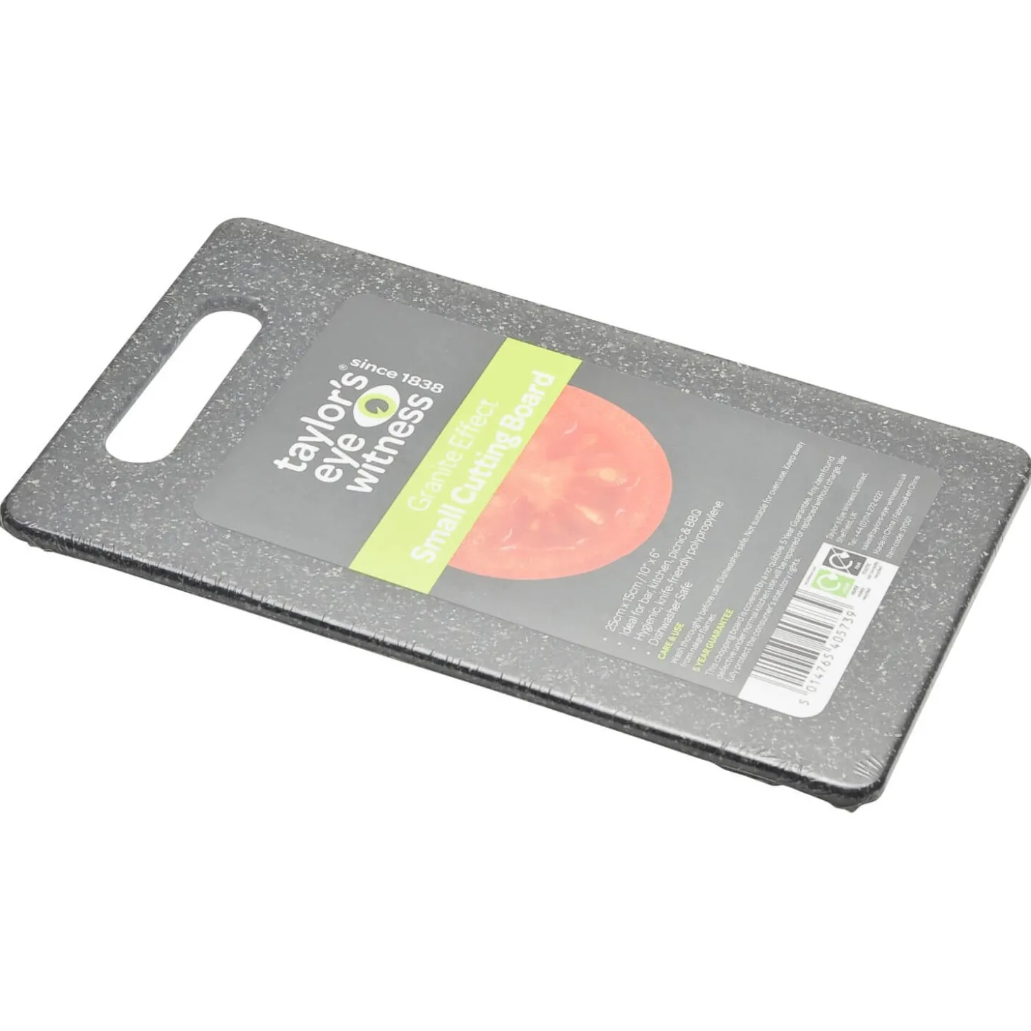 Protect worktops and knives when preparing meat, vegetables and poultry with the small rectangular chopping board from Taylor’s Eye Witness. Created using durable polypropylene with a Black granite finish. Other colours and sizes are also available.