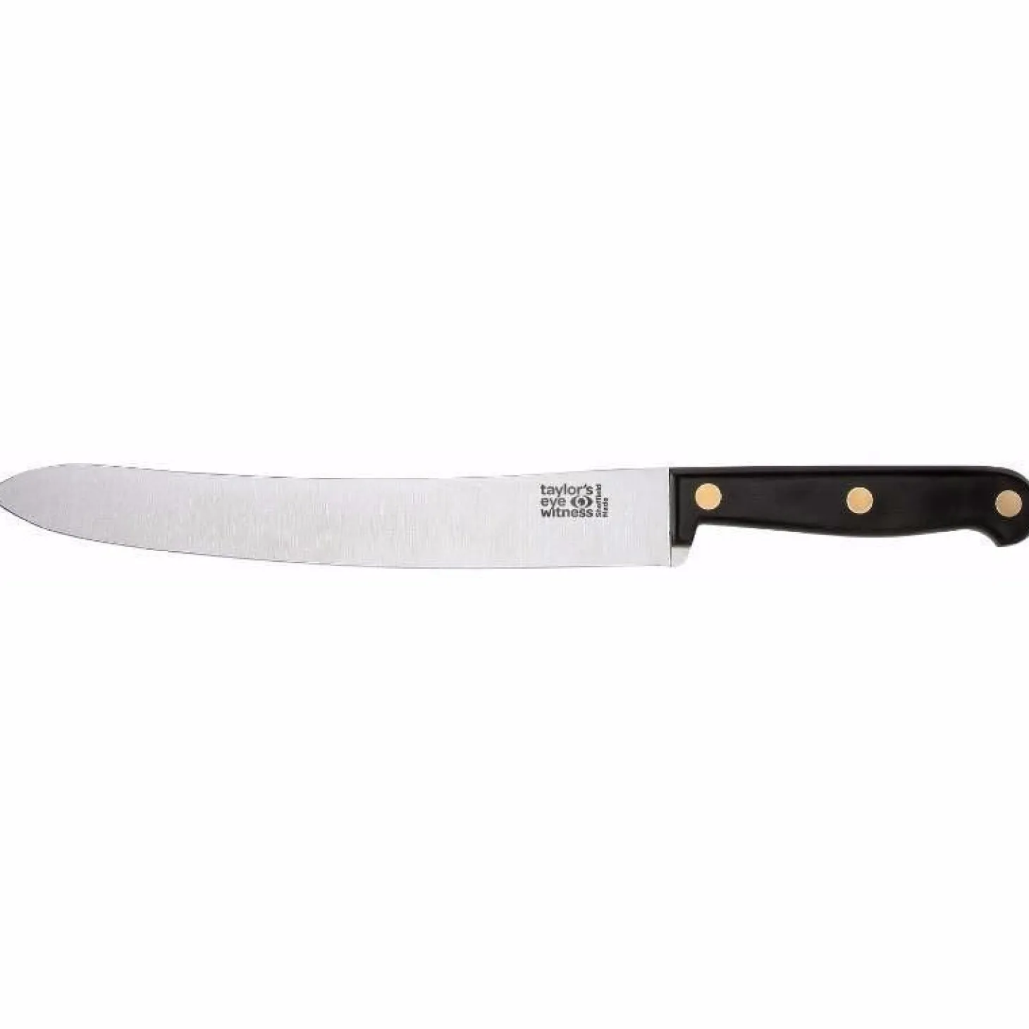 Each Taylor’s Eye Witness Heritage 23cm Carving Knife is crafted from a single length of carbon steel; precision ground to provide strength, flexibility and optimum sharpness when carving joints of meat and poultry. The handle is designed to fit comfortably into the hand with a endstop to prevent slippage and three solid brass rivets.