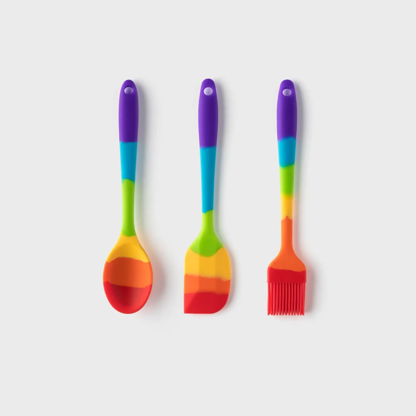 Taylor’s Eye Witness presents the Mini Silicone Utensil Set, which forms part of the Rainbow range, comprised of a spoon, spatula and pastry brush. Ideal for stirring, turning, basting, coating and greasing making it an ideal set for enthusiastic cooks of all ages. This lovely set is heat, odour and stain resistant, ensuring the bright rainbow colours will always stay bright!Â