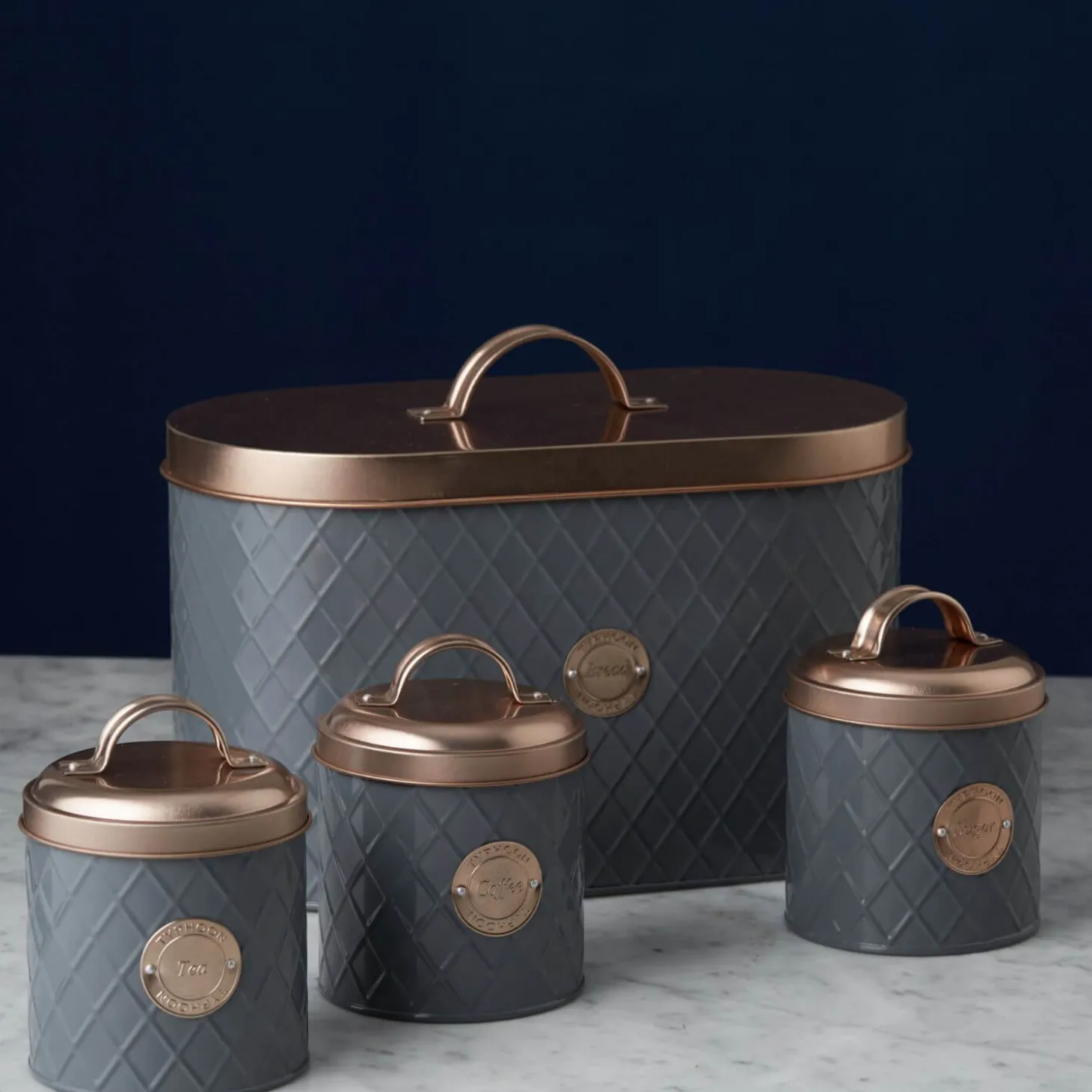 Part of the Henrik range, this Typhoon Pasta Storage Canister in graphite grey with a copper lid and copper badge on the front, is both stylish and practical. Ideal for storing your spaghetti, this pasta container will bring elegance to your countertop.