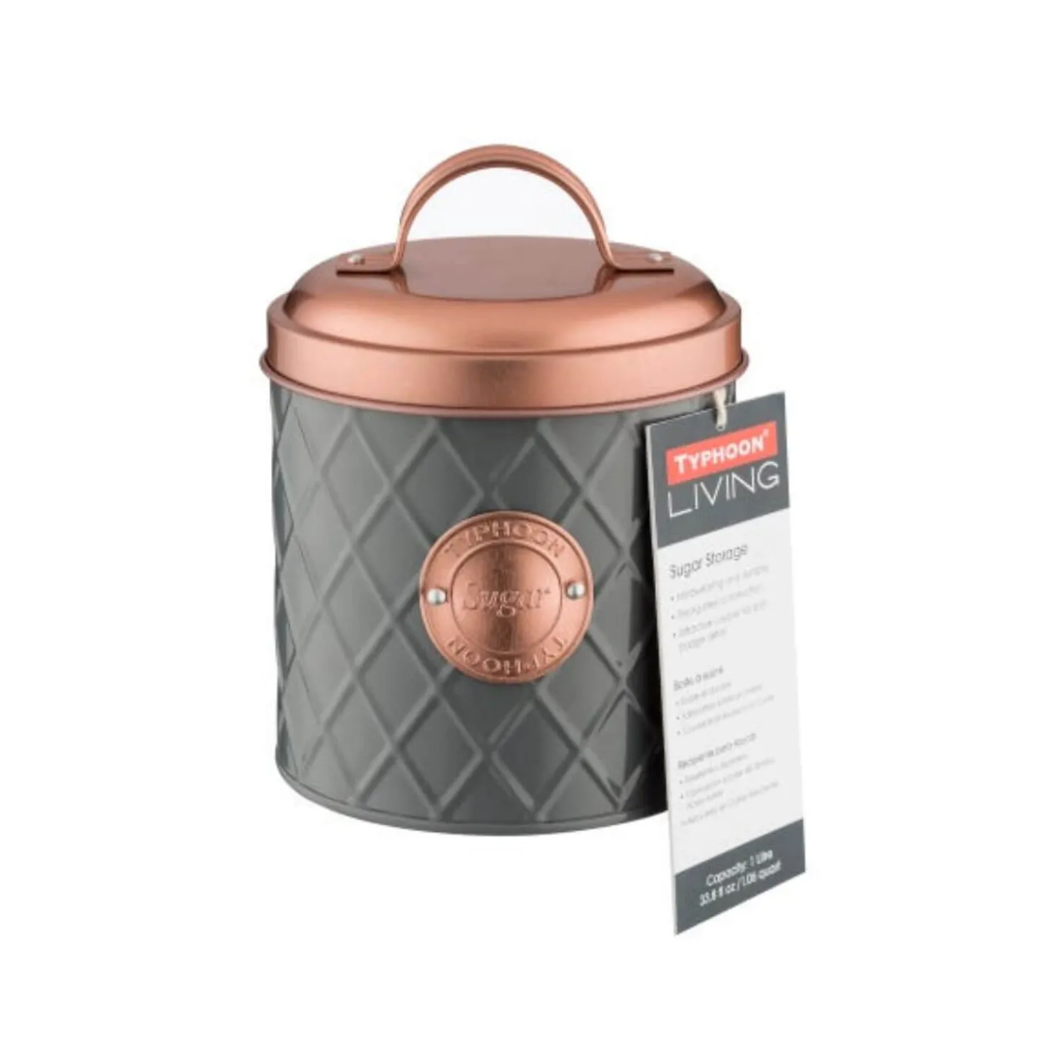 Part of the Henrik range, this Typhoon Sugar Storage Canister in graphite grey with a copper lid and copper badge on the front, is both stylish and practical. Ideal for storing your sugar keeping it dry and fresh, this sugar container will bring elegance to your countertop.