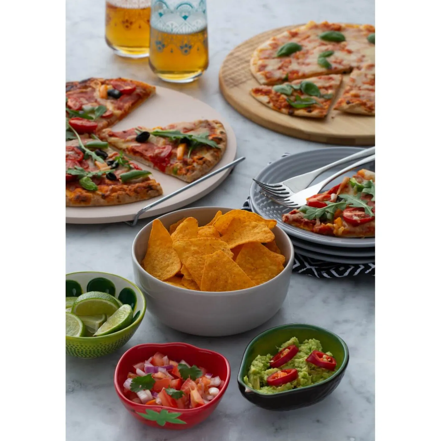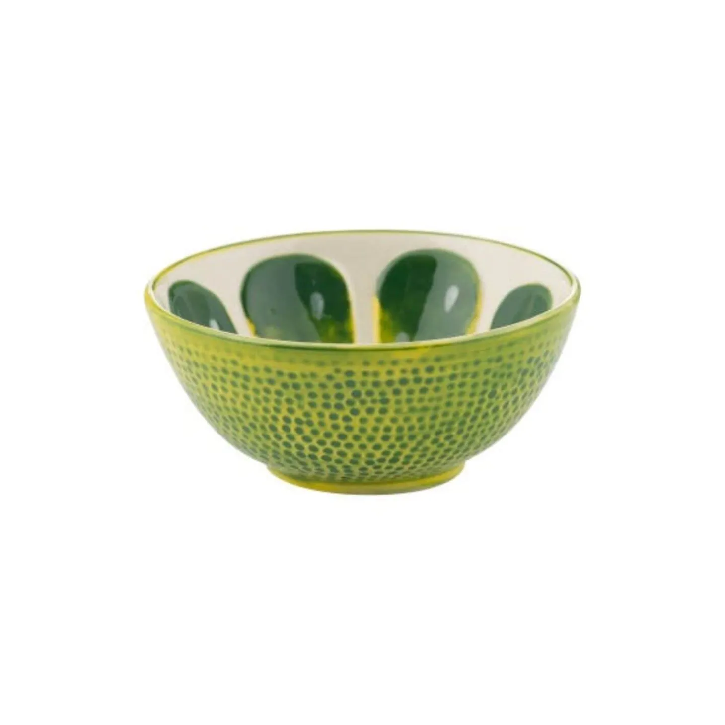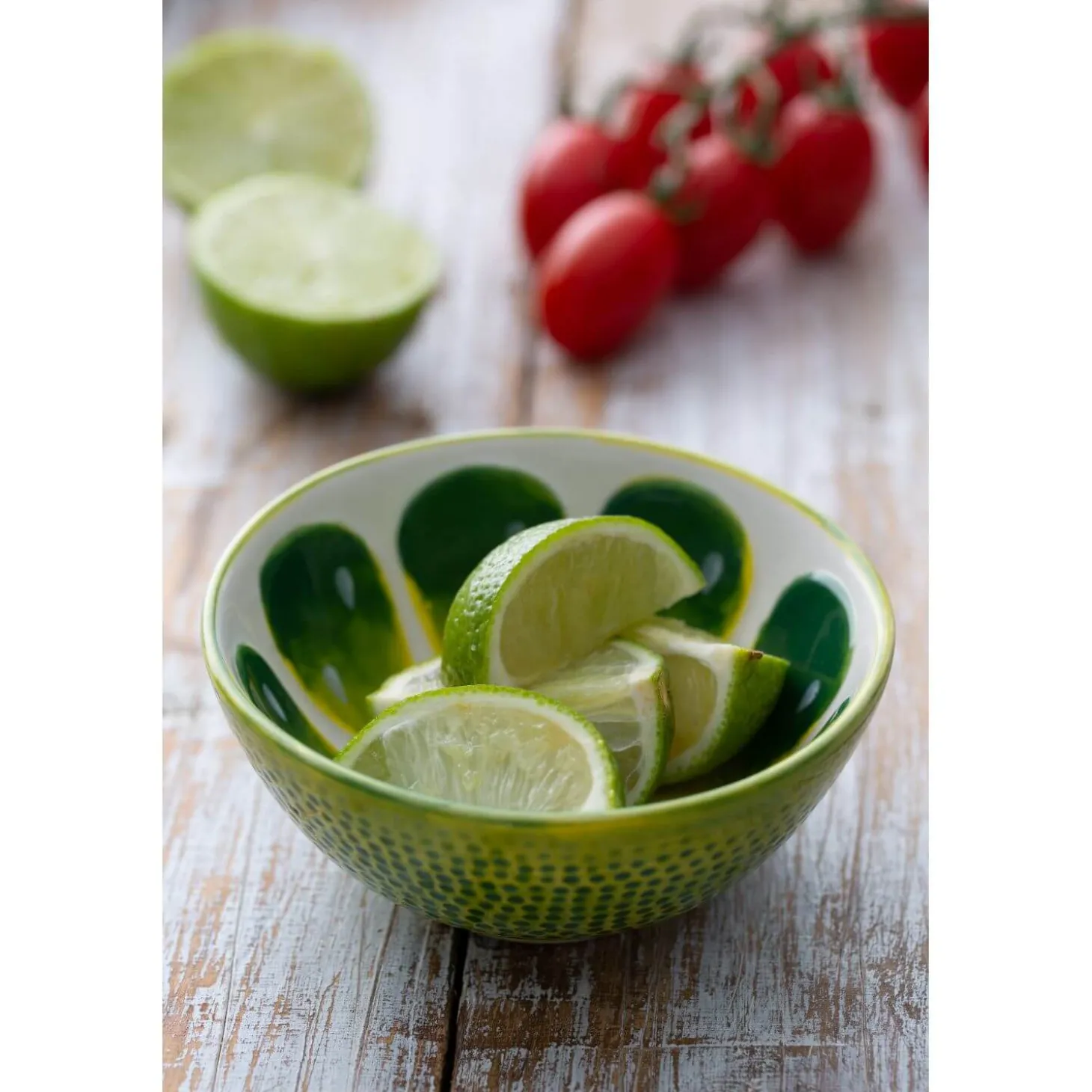 Part of the World Foods range, is this Typhoon Lime bowl, made from durable ceramic, this delightful bowl in green has designs of limes all around the interior with the exterior taking on the appearance of the skin of a lime, making it a fun way to serve limes, dips or snacks, it can also be used for containing ingredients as you cook. This lovely fun bowl will look great on any table or countertop.