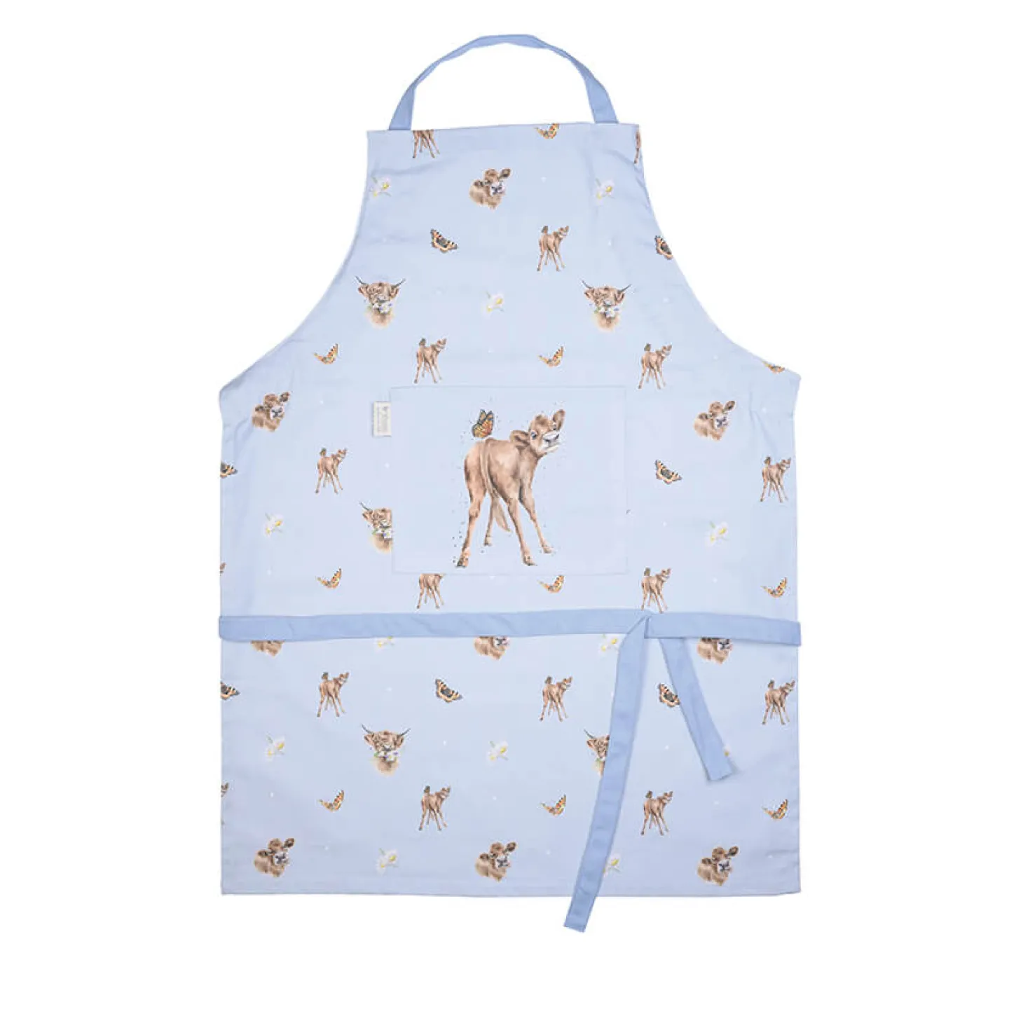 Wrendale Designs presents the ‘Farmyard Friends’ Apron, beautifully illustrated by renowned artist Hannah Dale. This lovely pale blue apron is decorated with a variety of farmyard animals and a delightful calf on the large handy front pocket with contrasting coloured neck loop and straps that are fully adjustable. A great gift for the cook or baker in your life or a treat for yourself.