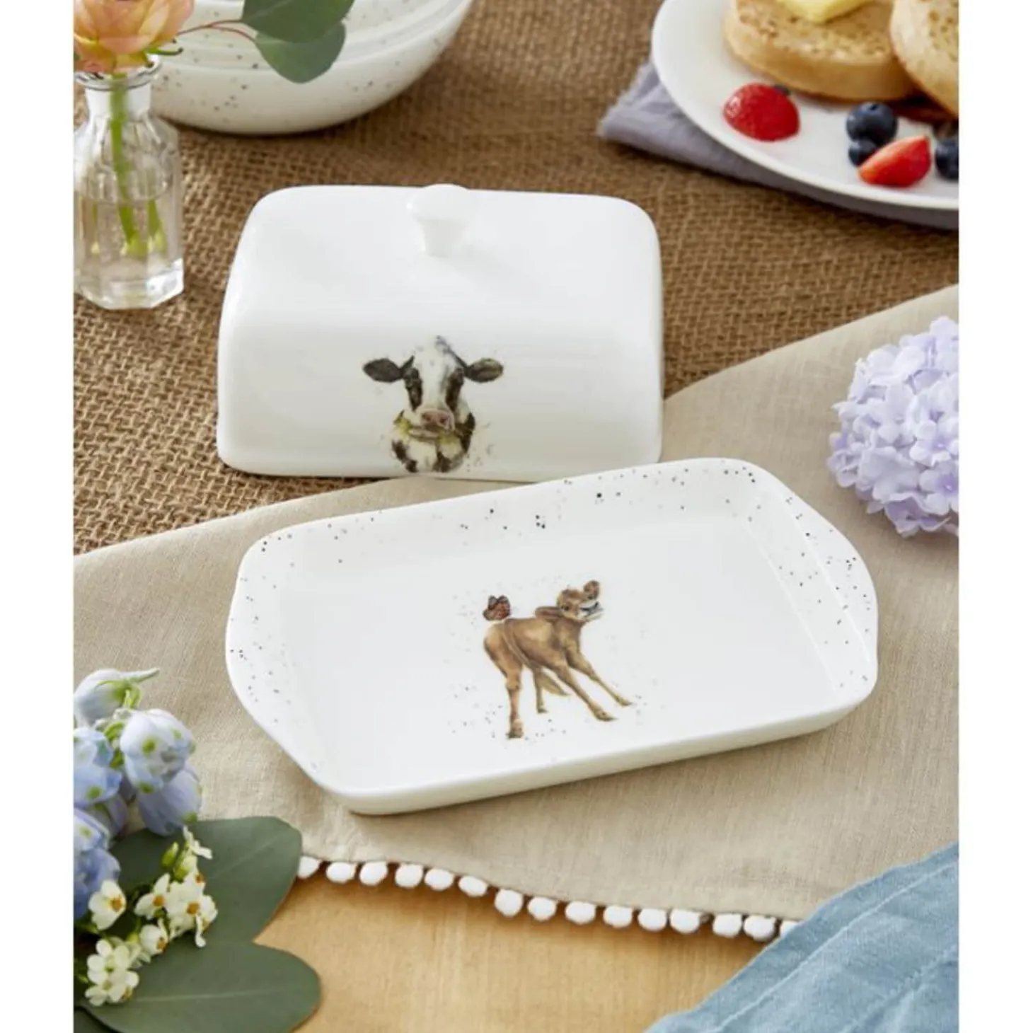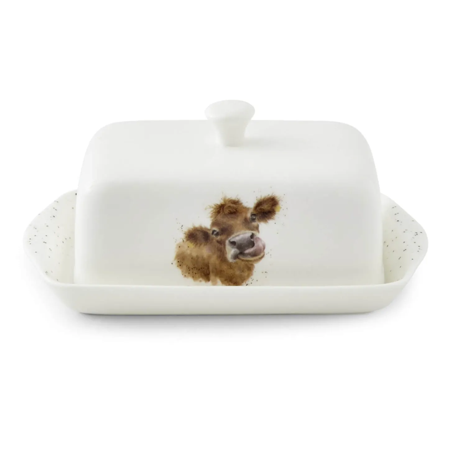 Wrendale Designs presents their ‘Mooo Cow’ Covered Butter Dish which is part of a beautiful range produced by Royal Worcester and features illustrations of animals by renowned artist Hannah Dale for Wrendale Designs. This Fine Bone China Butter dish features a delightful calf with a further illustration inside. This lovely butter dish would make a lovely gift or a treat for yourself.