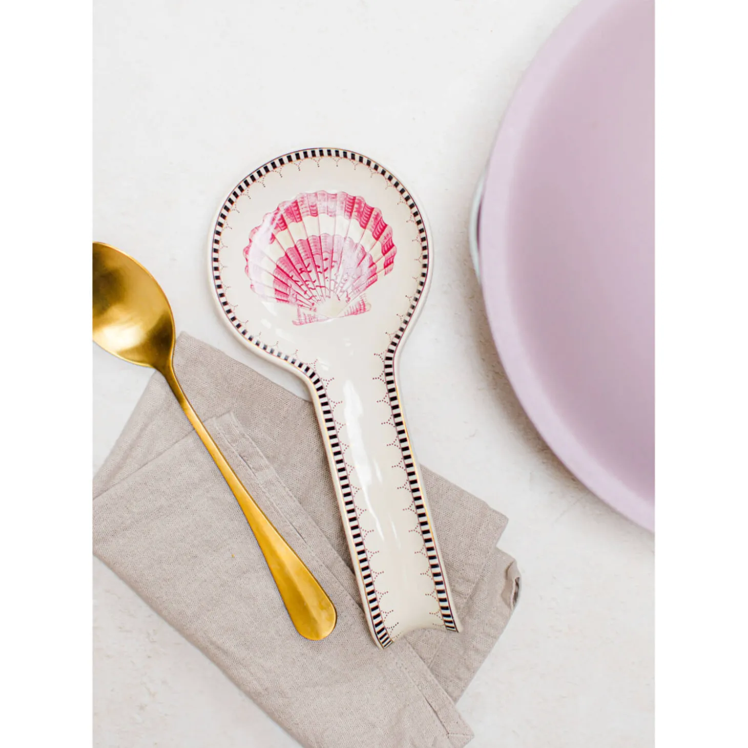 Yvonne Ellen presents the Fine China Spoon Rest in Shell design. Yvonne Ellen, a British designer, brings a touch of elegance and charm to her products each telling a whimsical tale using animal characters and playful slogans. Beautifully made and designed to make you smile, this spoon rest is sure to add a touch of fun and sophistication to your kitchen.