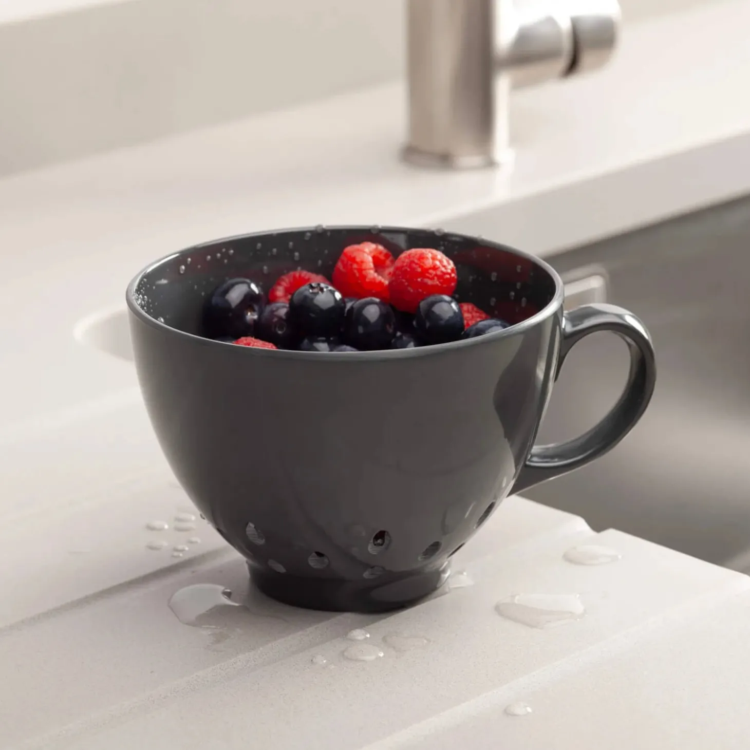 Zeal presents the Berry Colander in Dark Grey, this delightful little colander is about the size of a large teacup with a handle on the side, ideal for draining or rinsing small amounts, like fruit, peas and more. Small, but strong and sturdy, this Berry colander will sit securely in your sink or on your countertop.