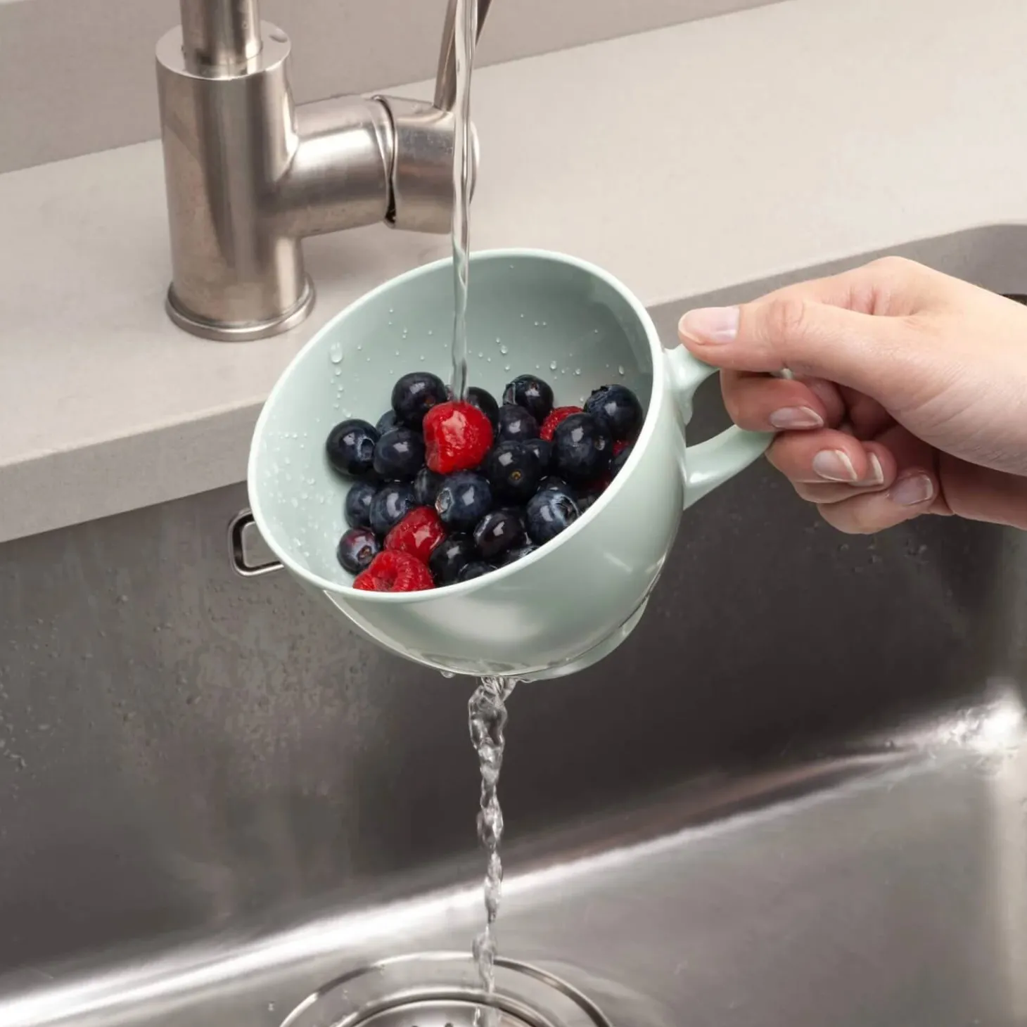 Zeal presents the Berry Colander in Sage Green, this delightful little colander is about the size of a large teacup with a handle on the side, ideal for draining or rinsing small amounts, like fruit, peas and more. Small, but strong and sturdy, this Berry colander will sit securely in your sink or on your countertop.