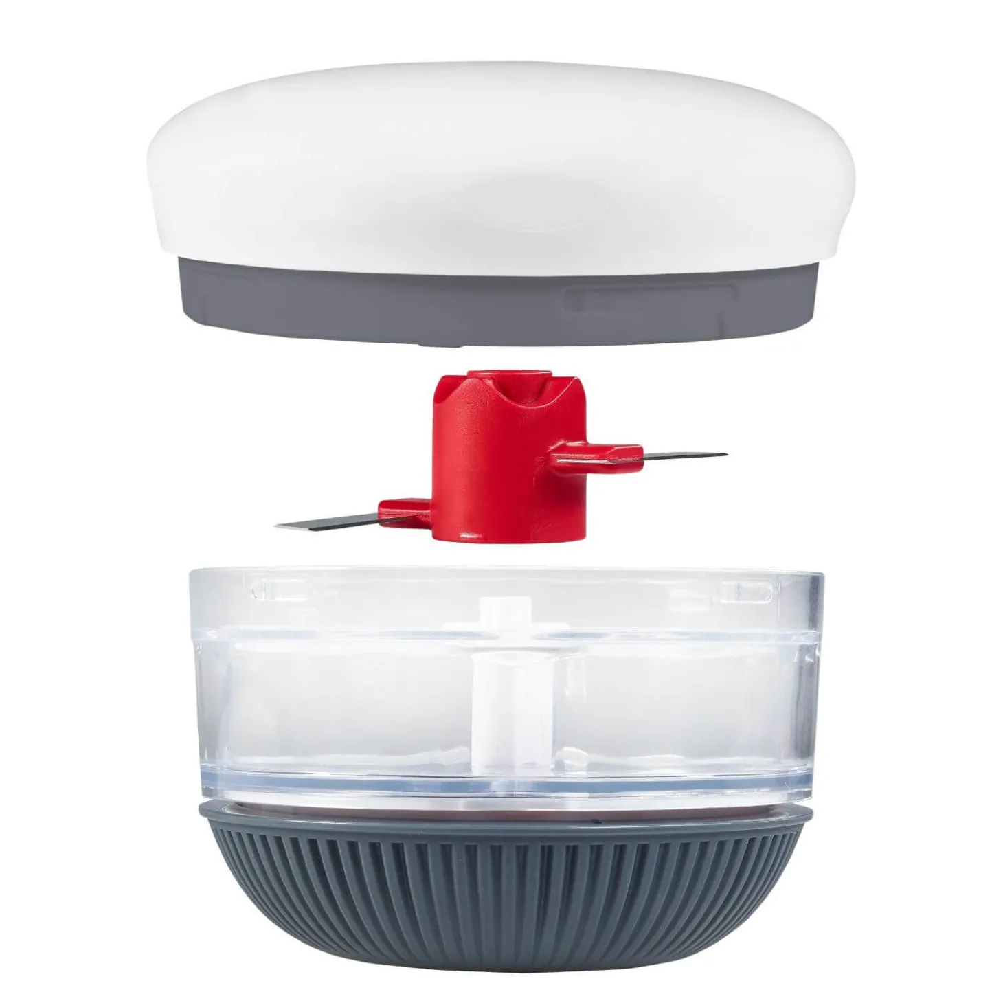 Zyliss presents the Twist & Roll Mini Chopper, the ideal tool for your kitchen for chopping small quantities. The mini chopper has double-sided blades which are operated by rolling the rubber grip base on your countertop or twisting in your hands. The more you twist or roll the finer the results will be. Perfect for garlic, ginger and much more.