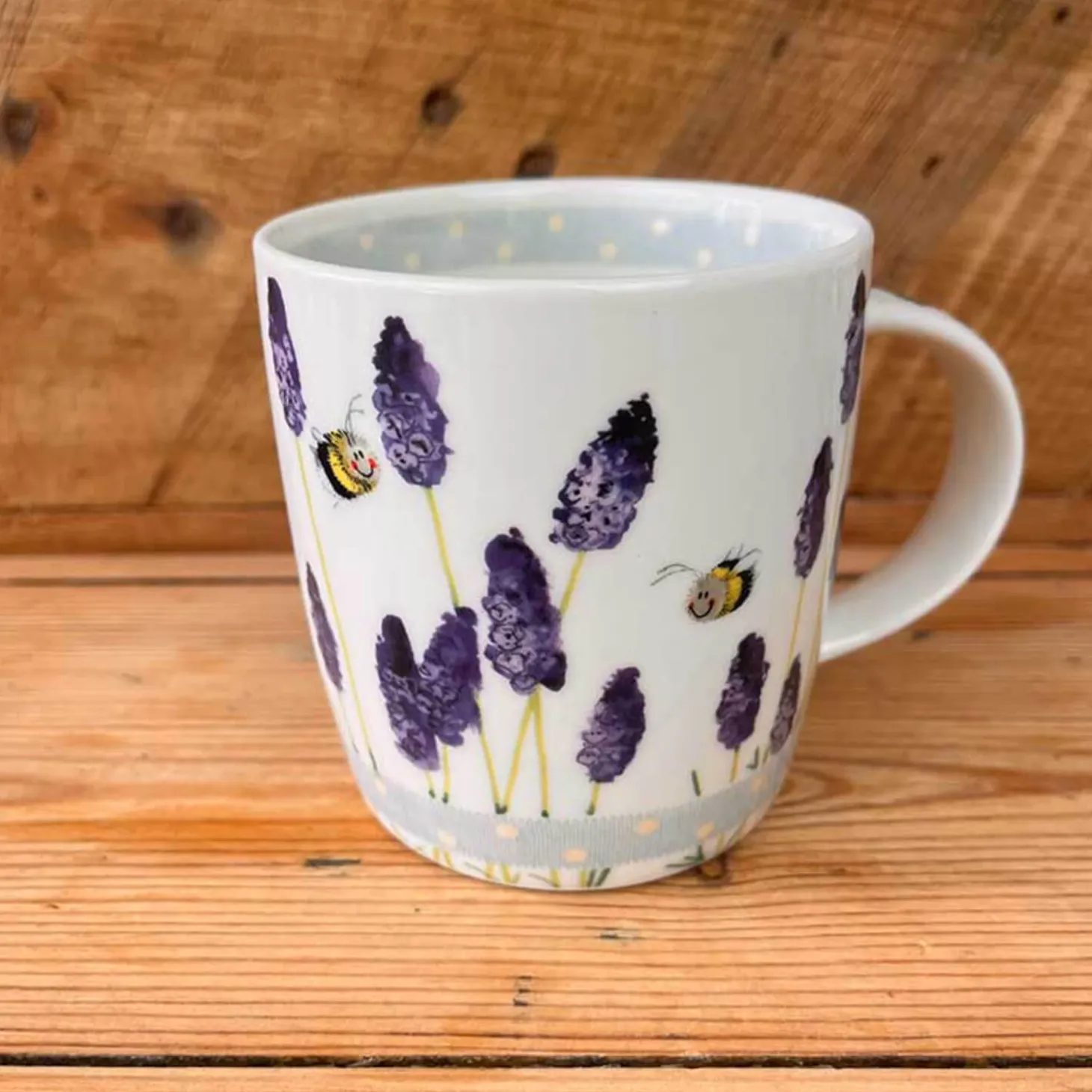 Alex Clark presents the ‘Lavender Bees’ mug, this fabulous mug features an illustration showing delightful fluffy bees amongst pretty lavender. Further illustrations feature around the inner rim and down the handle. A lovely way to start your day with a tea or coffee in this great mug!