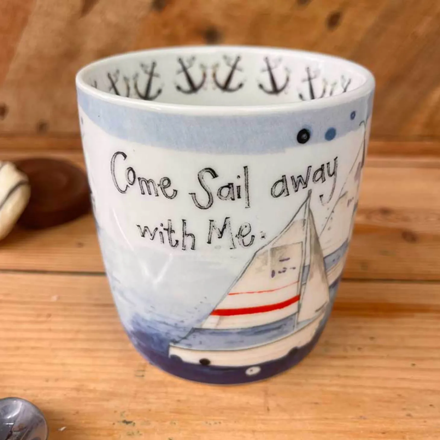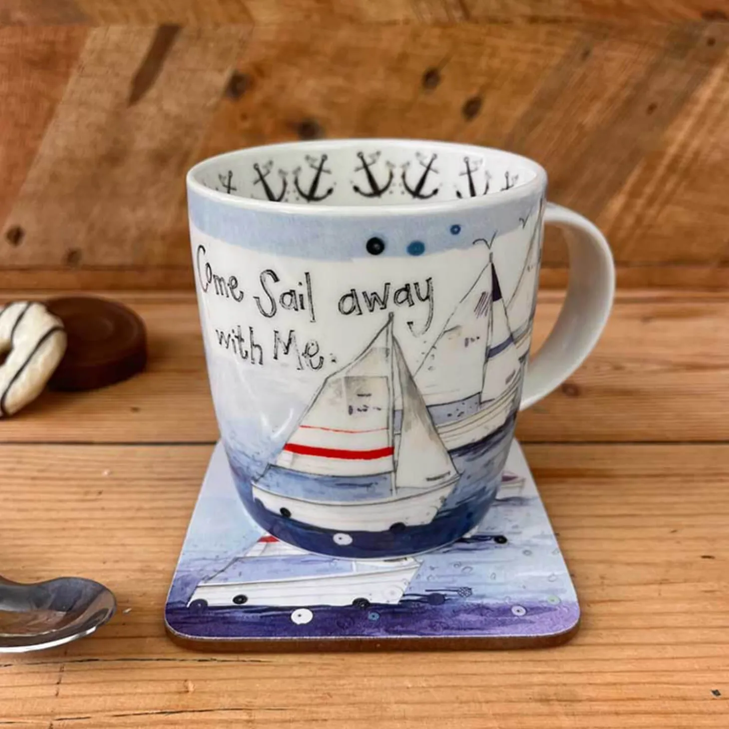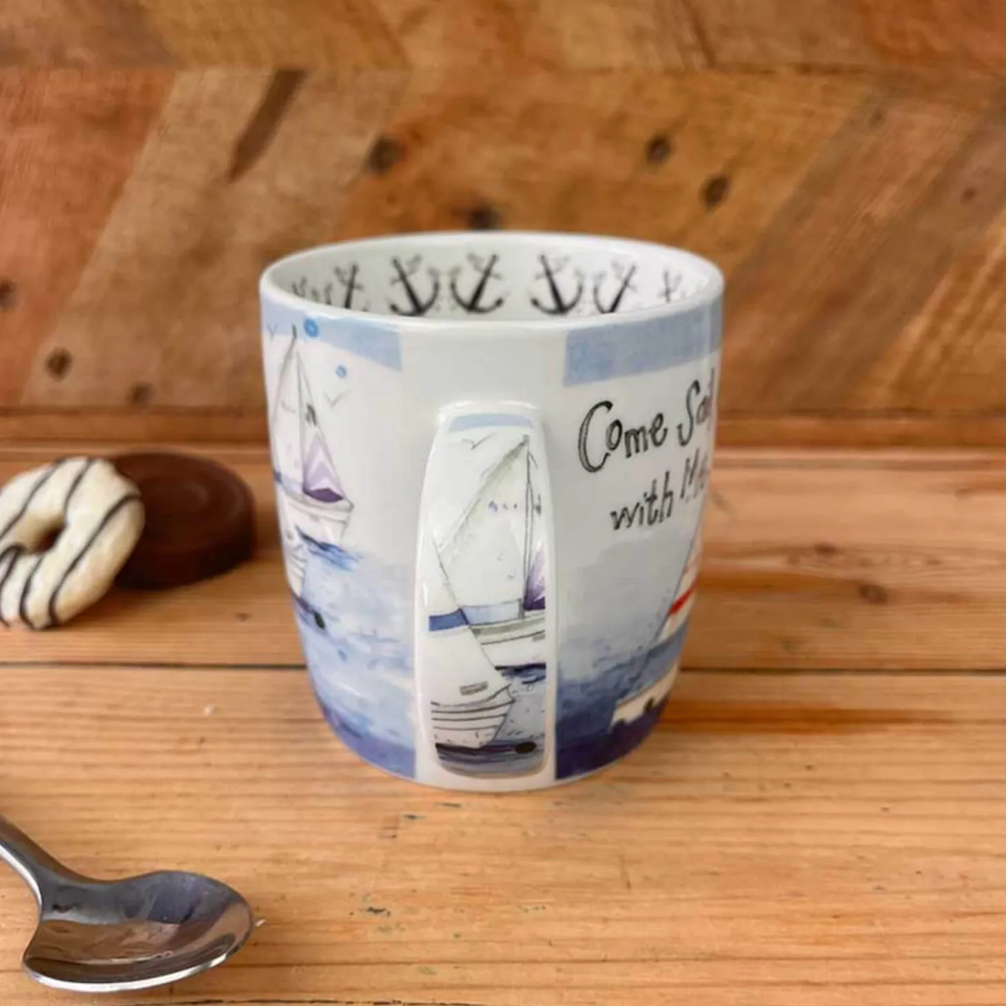Alex Clark presents the ‘Sailing Boats’ mug, this fabulous mug features an illustration showing sailing boats on the sea with the wording ‘Come Sail Away With Me’. Further illustrations feature around the inner rim and down the handle. A lovely way to start your day with a tea or coffee in this great mug!