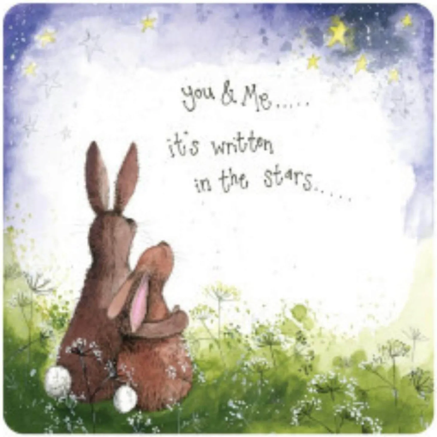This lovely You, Me and Starlight coaster from the Alex Clark range features features two rabbits cuddling with the wording ‘You & Me…. It’s Written In The Stars….’. The perfect coaster to go with your mug of coffee or tea.
