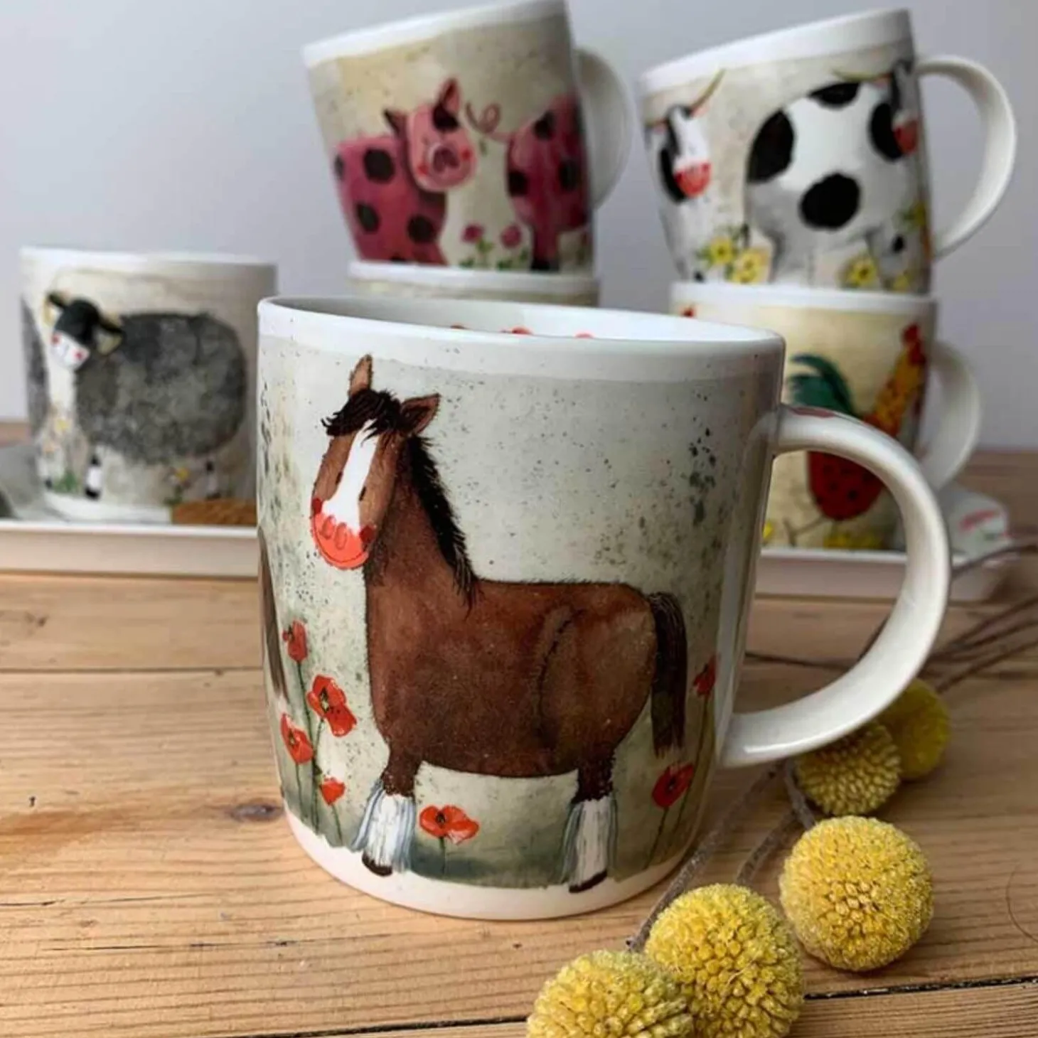 A lovely way to start your day with a tea or coffee in this lovely ‘Dolly’ Alex Clark mug. This mug features a delightful illustration by Alex Clark of a gorgeous horse amongst poppies, with more poppies around the inner rim and down the handle. Perfect for your favourite hot drink.