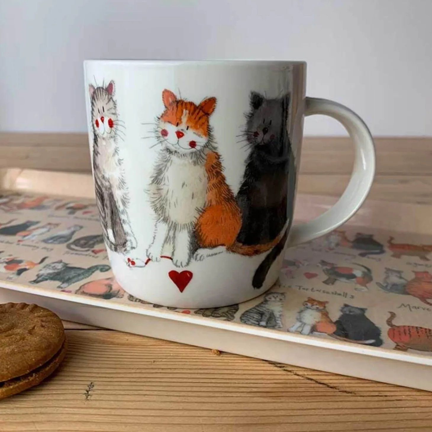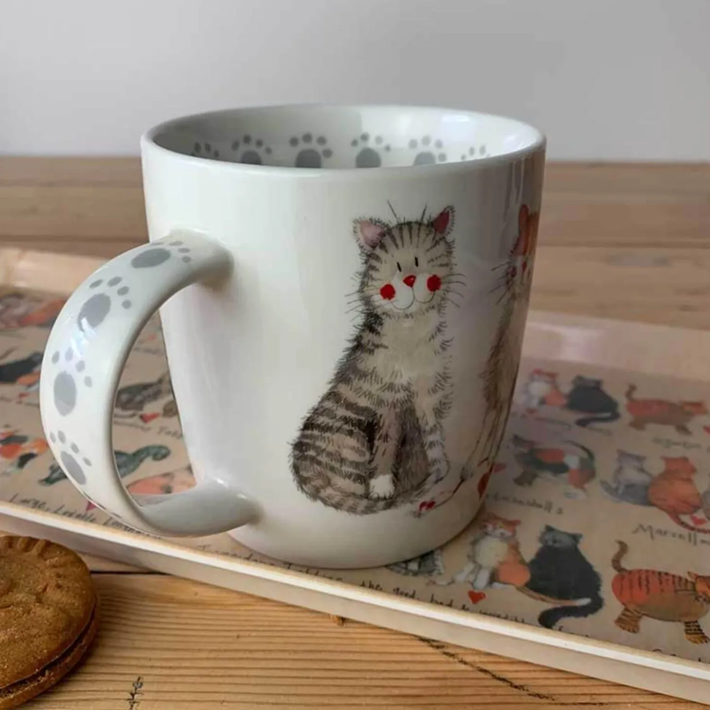 A lovely way to start your day with a tea or coffee in this lovely ‘The Good, The Bad & The Furry’ Alex Clark mug. This mug features a delightful illustration by Alex Clark of gorgeous cats, with paw prints around the inner rim and down the handle. Perfect for your favourite hot drink.
