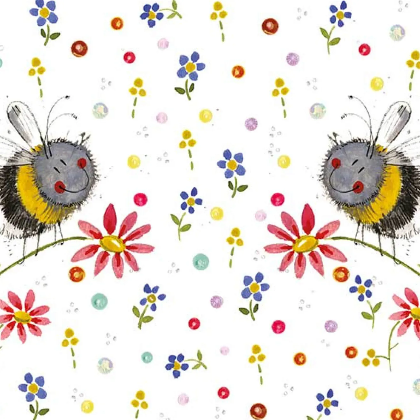 Alex Clark presents the Bees and Flowers Placemat. Protect your table and tablecloth from spills and heat damage with this charming placemat, featuring a beautiful illustration of fluffy, rosy-cheeked bumblebees resting among pretty flowers.