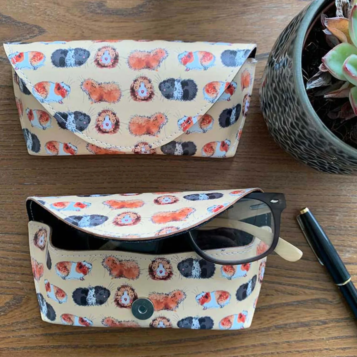 Alex Clark presents the ‘Guinea Pigs’ Spectacle case, beautifully decorated with lots of fluffy guinea pigs on a creamy orange background. This spectacle case is made from PU vegan leather, lined with microfibre to keep your glasses nice and safe whilst on the move.