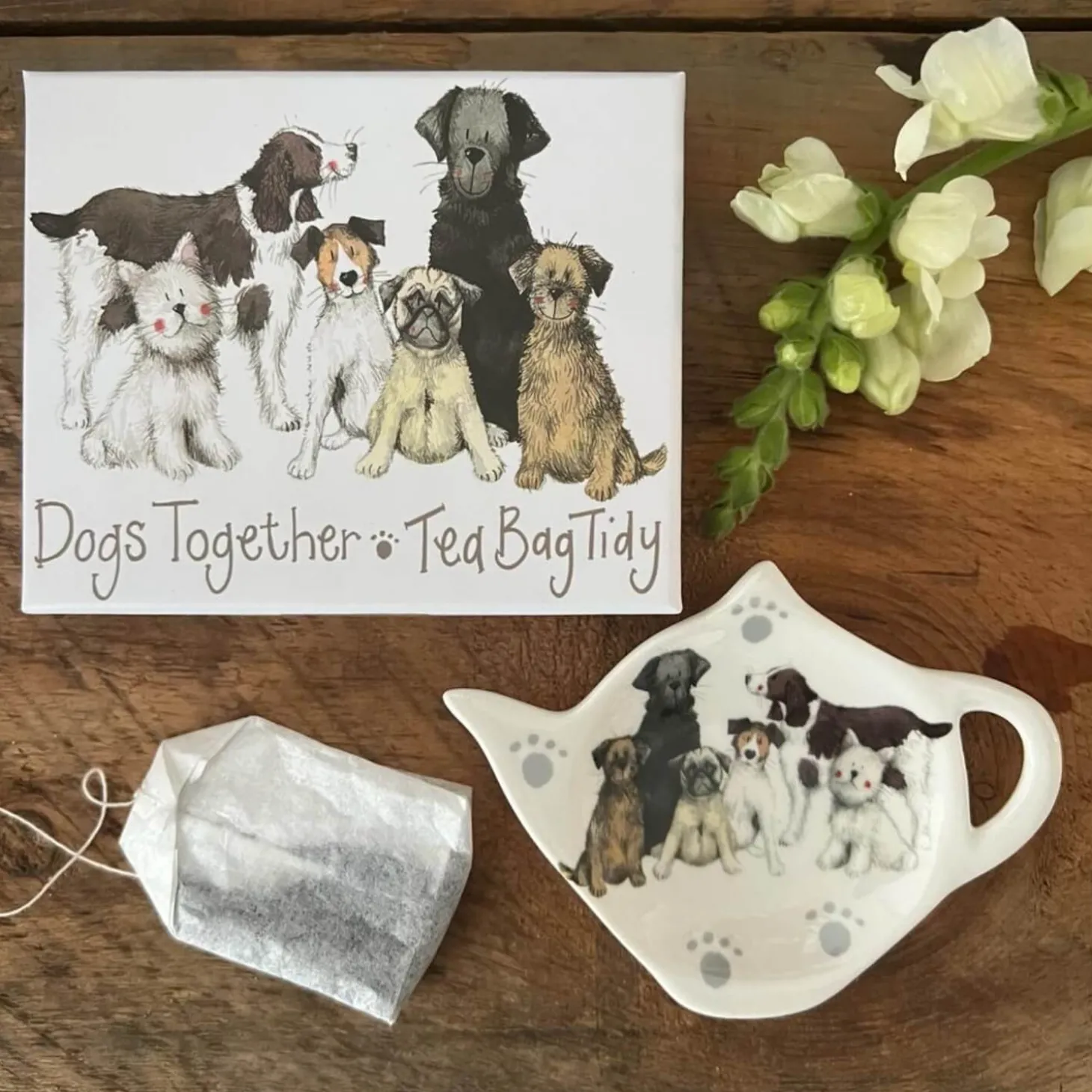 Alex Clark presents the ‘Dogs Together’ Teabag Tidy, featuring beautiful illustrations of gorgeous dogs surrounded by paw prints. Shaped like a teapot, this delightful ceramic teabag tidy will look lovely in any style of kitchen. Presented in a complementing gift box, this teabag tidy would make a lovely gift or a treat for yourself.