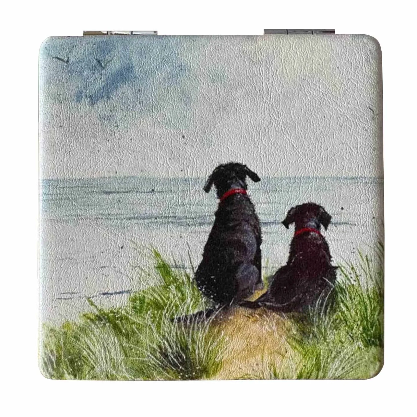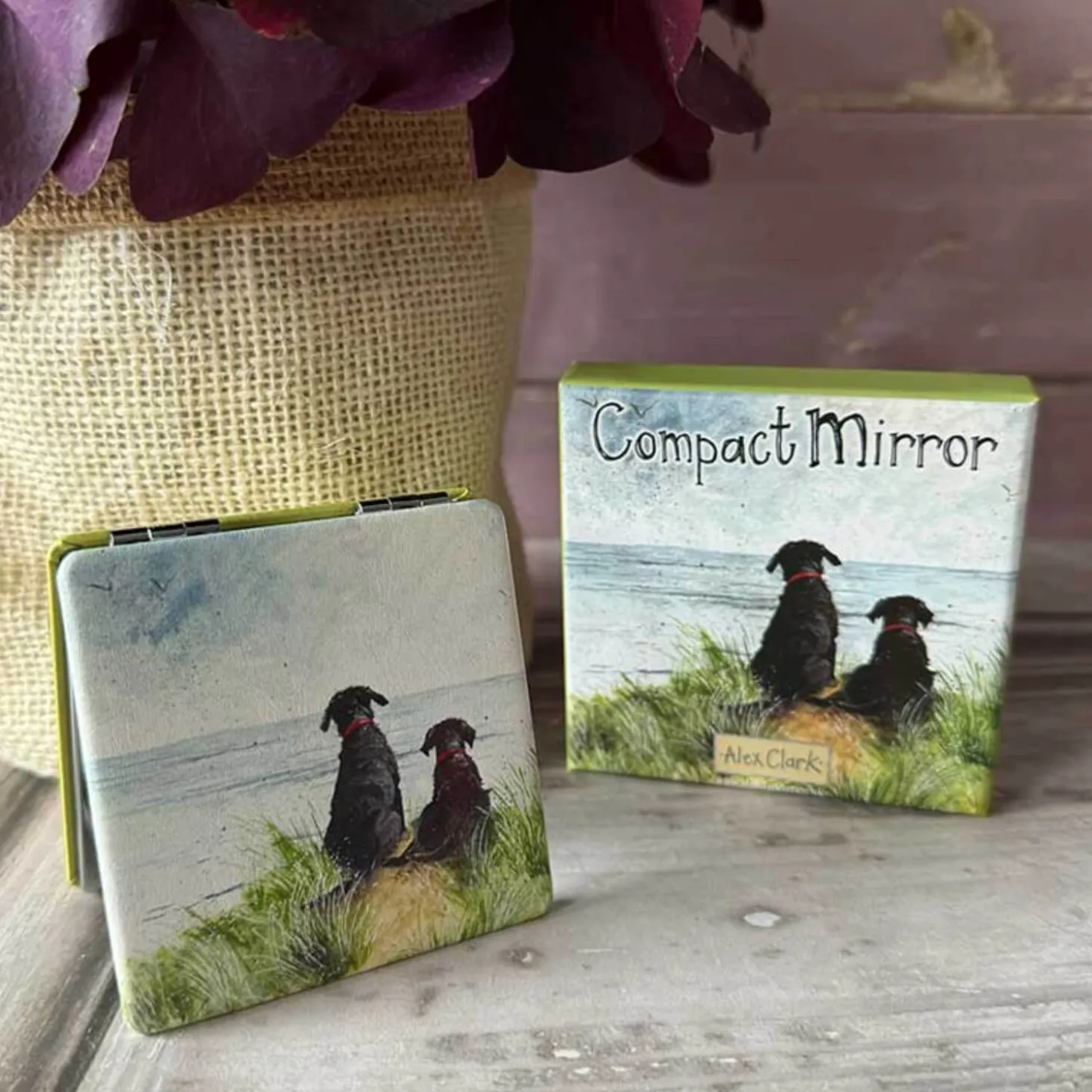 Alex Clark presents the ‘Dunes’ Vegan Leather Compact Mirror, a perfect blend of fun and practicality for your everyday needs. Featuring a double mirror, this compact is wrapped with a serene illustration of a peaceful pooch gazing out to sea, inspired by the English countryside and Alex’s love for animals. The soft vegan leather not only adds a touch of luxury but is also a cruelty-free and eco-conscious alternative to traditional leather. Presented in a matching gift box, this charming compact would make a lovely gift or special treat for yourself!