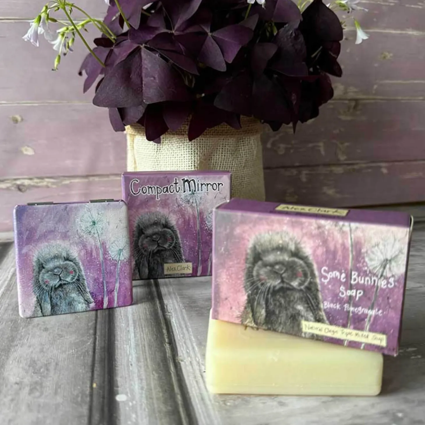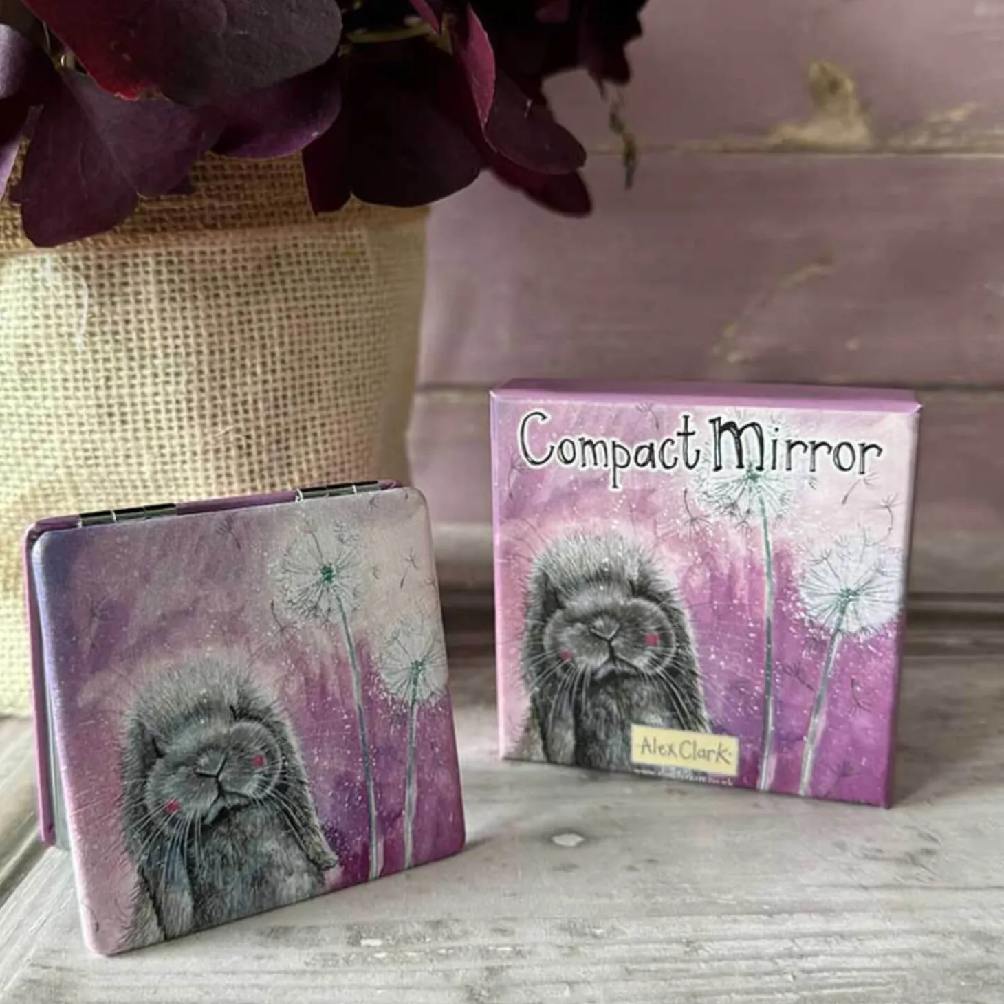 Alex Clark presents the ‘Misty’ Vegan Leather Compact Mirror, a perfect blend of fun and practicality for your everyday needs. Featuring a double mirror, this compact is wrapped in an adorable fluffy bunny and dandelion illustration, inspired by the English countryside and Alex’s love for animals. The soft vegan leather not only adds a touch of luxury but is also a cruelty-free and eco-conscious alternative to traditional leather. Presented in a matching gift box, this charming compact would make a lovely gift or special treat for yourself!