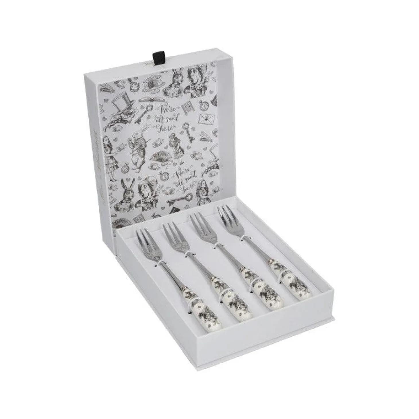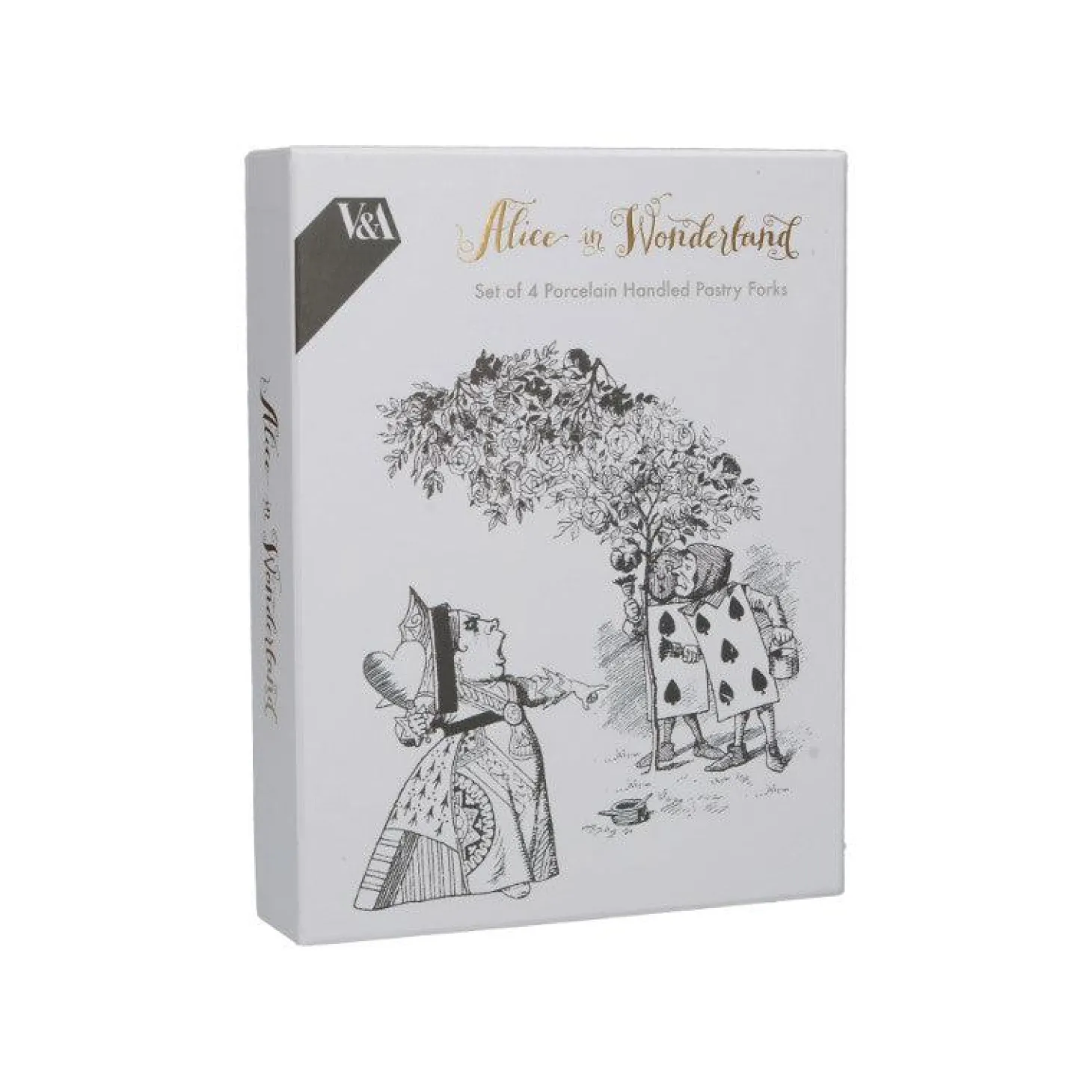 These Victoria and Albert Alice in Wonderland Pastry Forks will add a touch of character to your morning coffee, lunch or afternoon tea table. Featuring stainless steel prongs and white porcelain handles with intricate character illustrations. The Alice in Wonderland pastry forks an elegant way to serve sponge, pastry and other types of cakes and sweet treats.