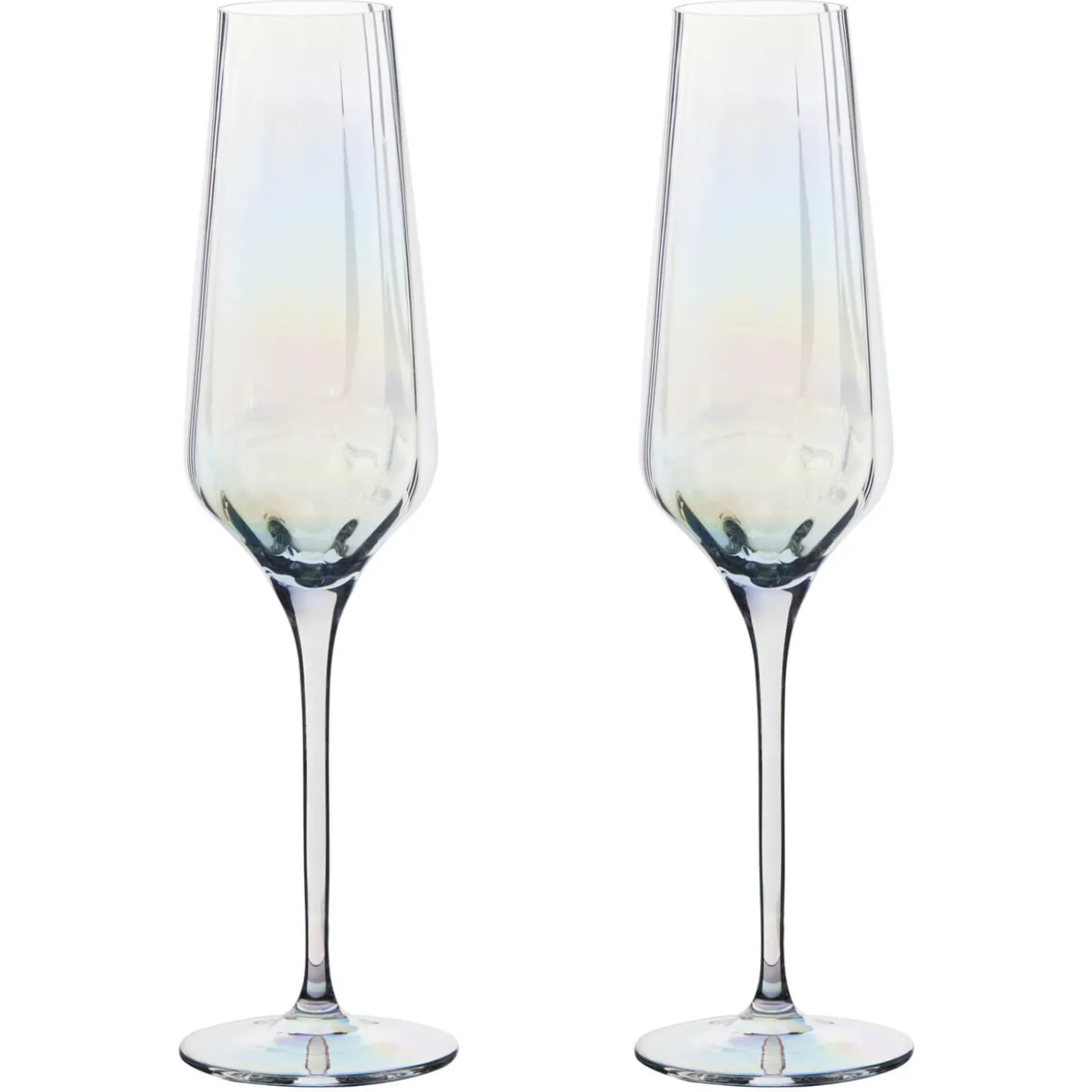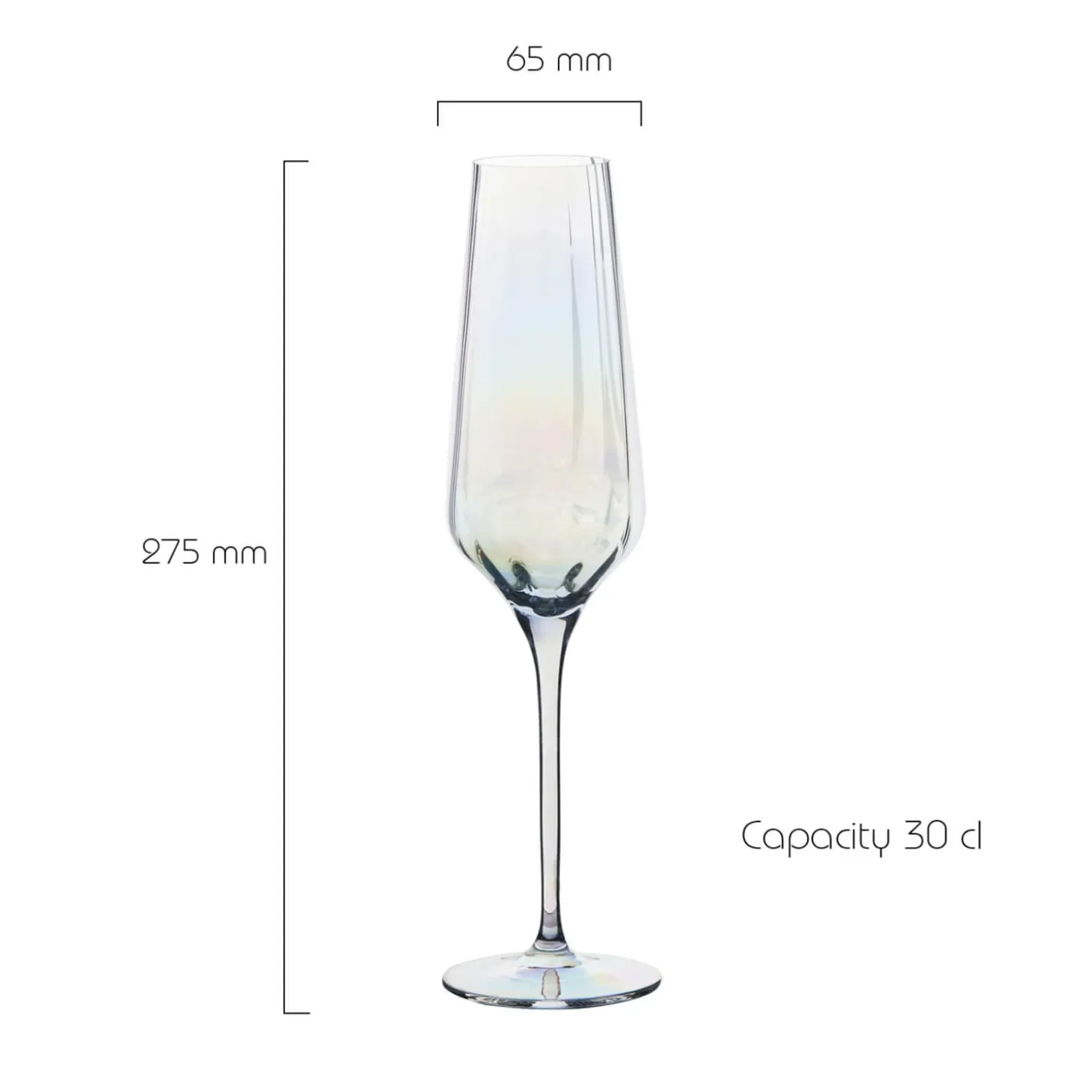 Designed in the UK by Anton Studio Designs London, these beautiful Palazzo Champagne Flute Glasses are mouth-blown and handcrafted by skilled craftsmen making them unique as well as lovely to look at. With luxurious long stems and a slender profile, the design is wonderfully elegant. Running vertically within the bowl of each glass is a broad open optic, bringing shape and style letting in light in such a way as to display the stunning but subtle pearlescent finish which adorns each glass. These glasses would make a truly lovely gift or a treat for yourself.