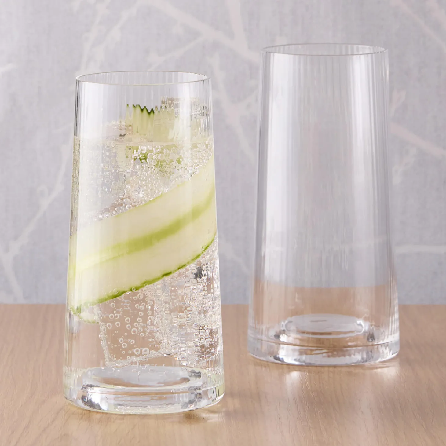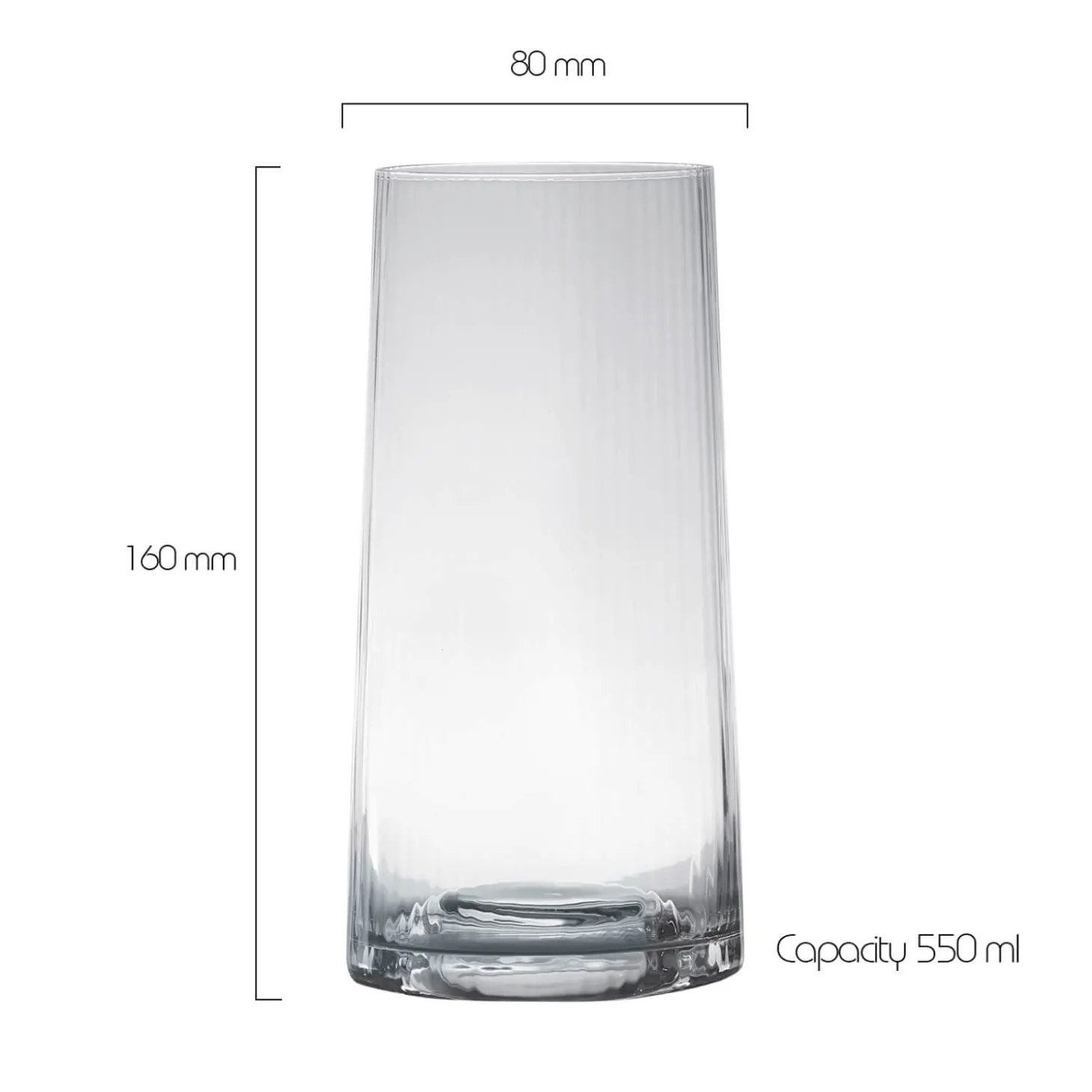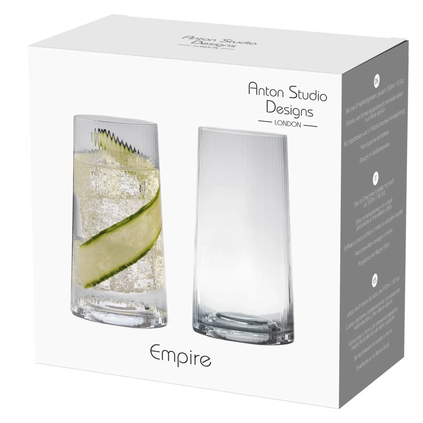 Designed in the UK by Anton Studio Designs London, these beautiful Empire DOF Hi-Ball Glasses are mouth-blown and handcrafted by skilled craftsmen making them unique as well as lovely to look at. The stylish contemporary design of a delicate vertical optic going up and down the bowl that tapers at the top, creates a stunning effect. Impress your guests by serving their drinks in these delightful hi-ball glasses.