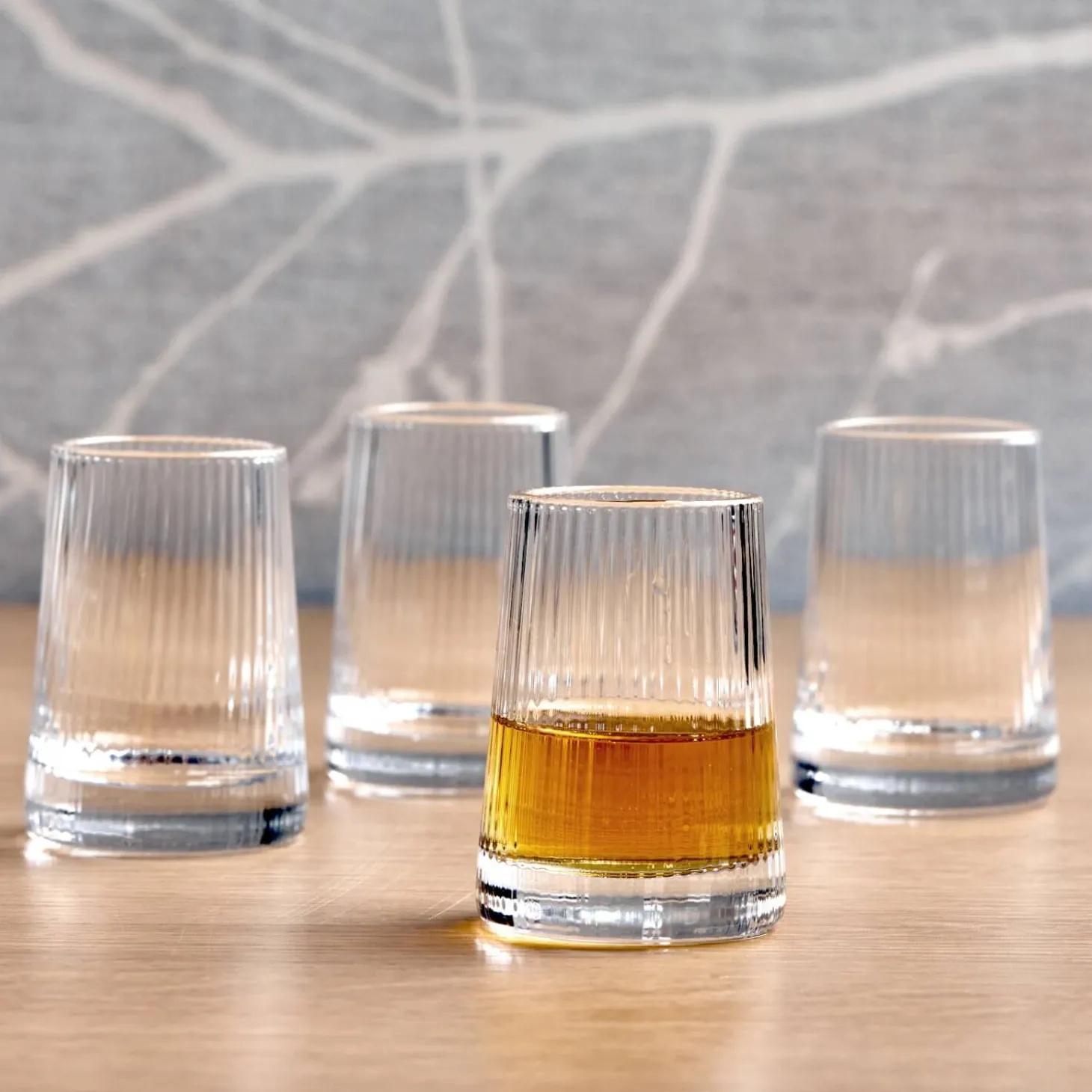 Designed in the UK by Anton Studio Designs London, these beautiful Empire Shot Glasses are mouth-blown and handcrafted by skilled craftsmen making them unique as well as lovely to look at. The stylish contemporary design of a delicate vertical optic going up and down the bowl that tapers at the top, creates a stunning effect. Impress your guests by serving their drinks in these delightful shot glasses.