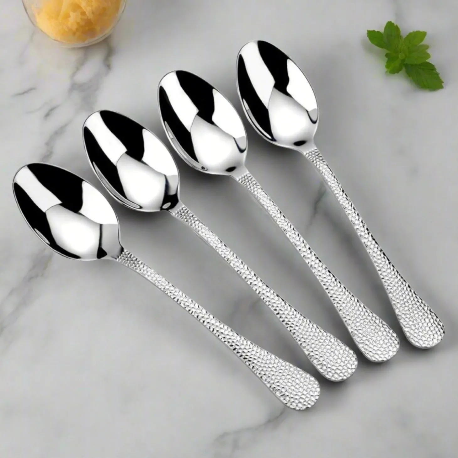 Arthur Price presents the Avalon Set of 4 Serving Spoons, beautifully crafted from the finest 18/10 Sovereign Stainless Steel using the very best chromium and nickel. This stylish set, with its hammered handles flaring towards the end, will certainly add a touch of elegance to your dining table.