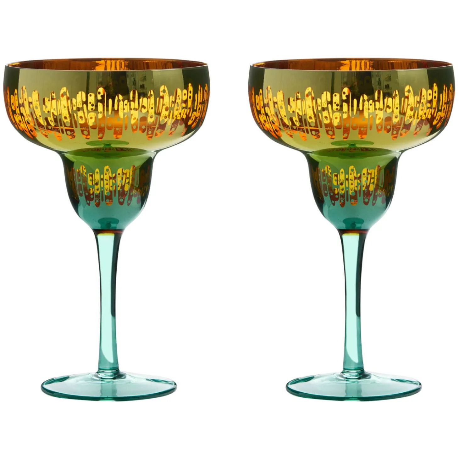 Create a beautiful atmosphere with this set of 2 stunning Margarita Glasses by Artland as part of their Fiesta range. With the unusual design of a mirrored finish in ambers and blues, both inside and outside with a design that encircles around the bowl of the glass You can’t help but impress your guests whilst entertaining with these glasses. Perfect as a gift or as a treat for yourself.