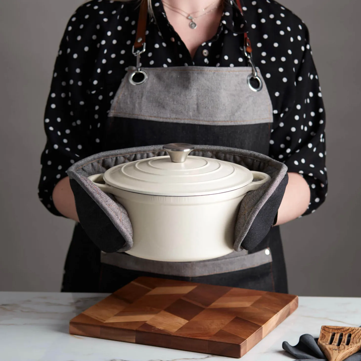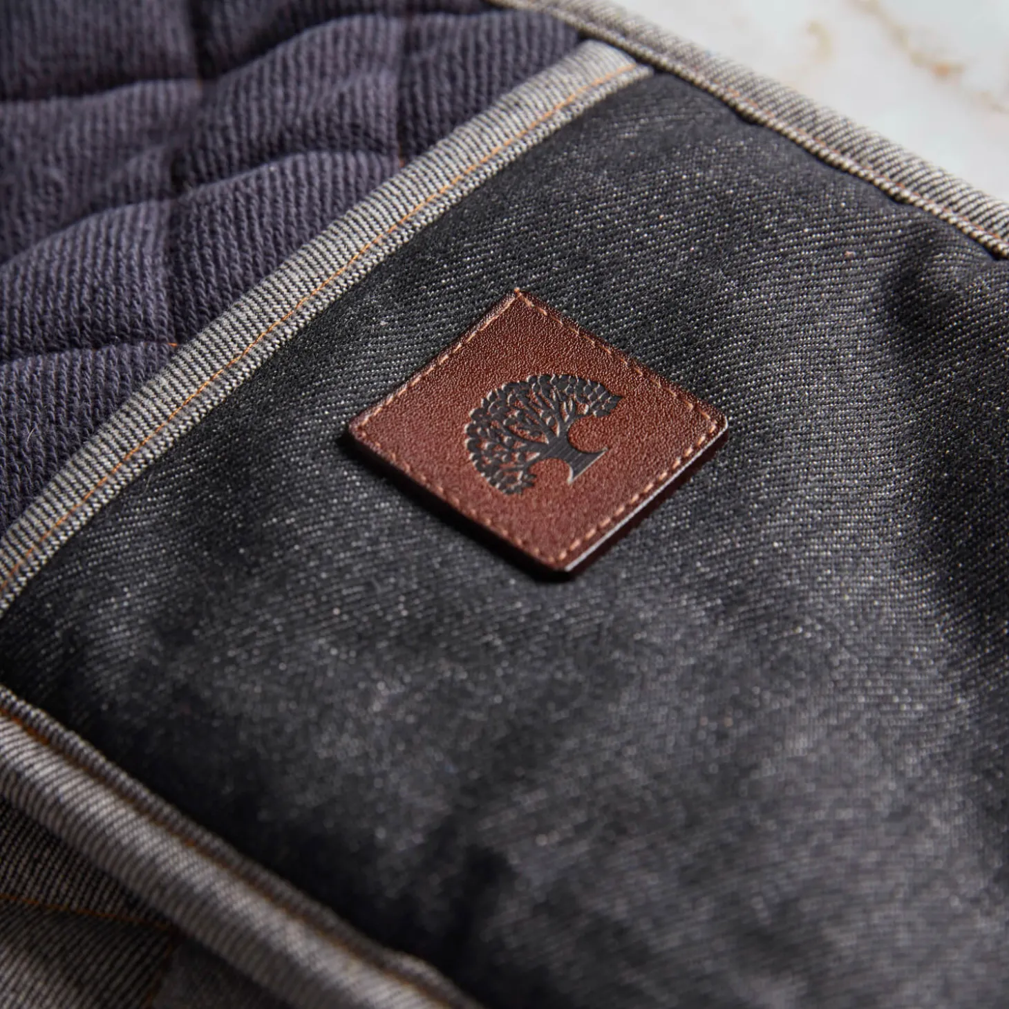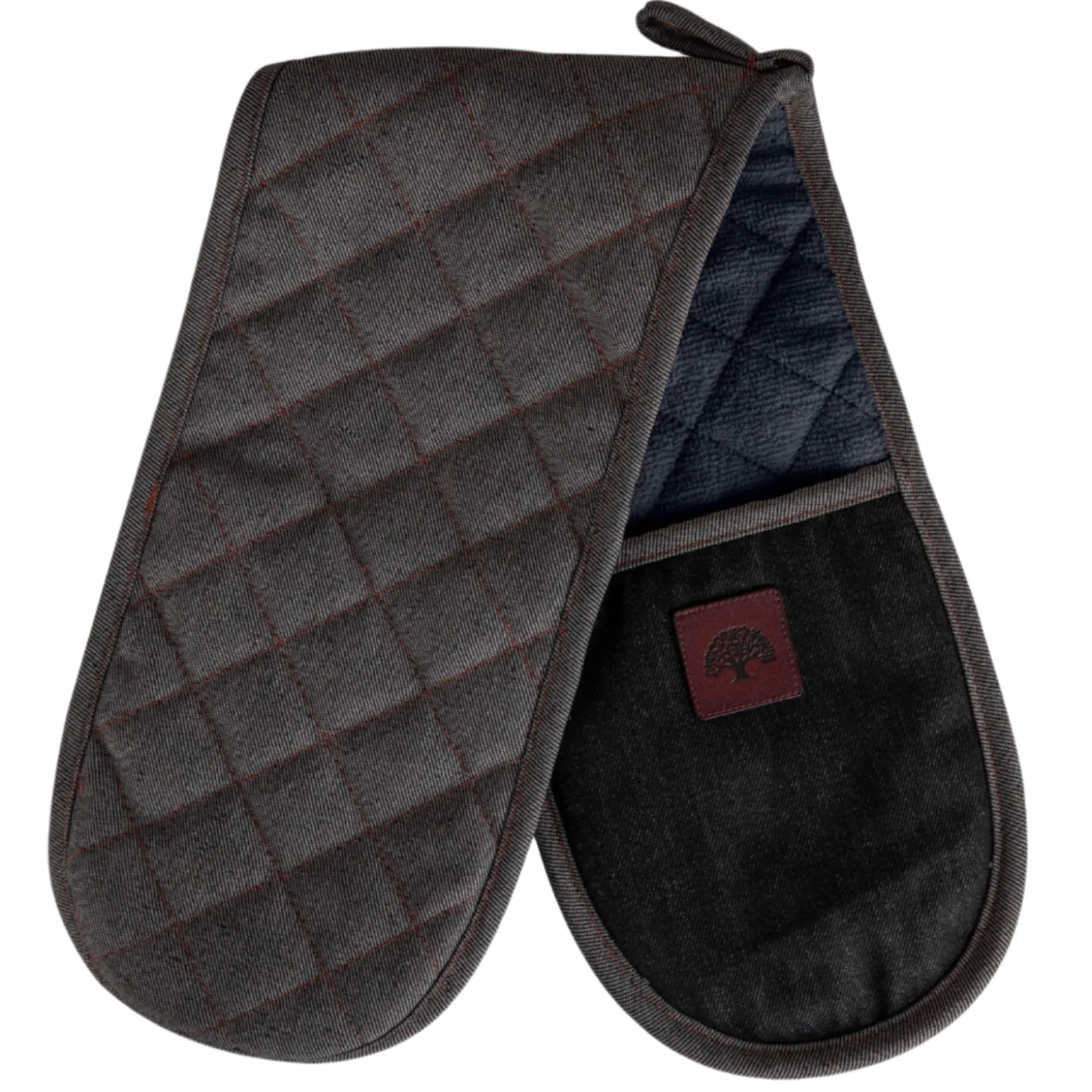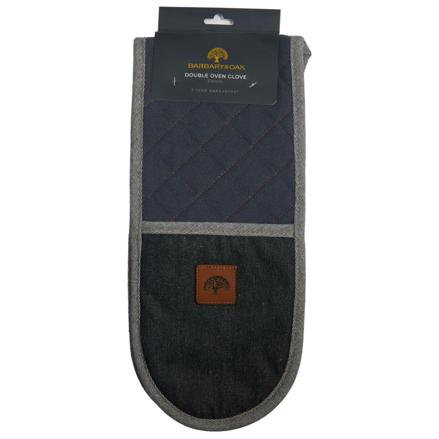Barbary & Oak presents the Denim Double Oven Glove, a stylish and functional addition to any kitchen. Crafted from heat-resistant denim with quilted stitching and contrasting brown leather detail, this glove provides an elegant and modern solution to handling hot pots and pans. Featuring a convenient hanging loop, it allows for easy storage when not in use. Pair it with other items from the Barbary & Oak denim textile range to complete your kitchen collection.