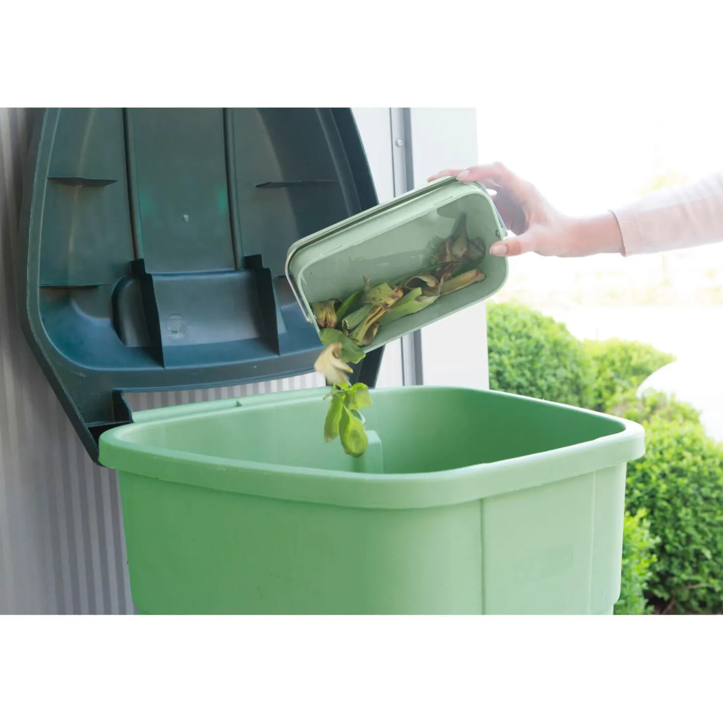 This Food Waste Caddy in Jade Green produced by Brabantia is both a practical and stylish addition to your kitchen. The caddy has a sturdy stainless steel handle making it easy for you to carry out the food waste to your outside recycling bin or to reposition it on your countertop whilst you prepare your salads or vegetables. The caddy has a ‘stay open’ lid making it easy to use.
