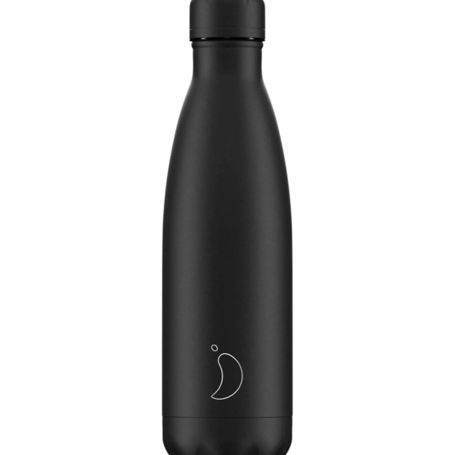 The 500ml Monochrome Drinks Bottle in All Black by the highly acclaimed Chilly’s is ideal for maintaining a healthy lifestyle. Made from durable, high-grade 18/8 stainless steel, the bottle features a matching coloured airtight screw top lid with a silicone o-ring to prevent leaks, and preserve the flavour and freshness of your chosen drink without tainting.